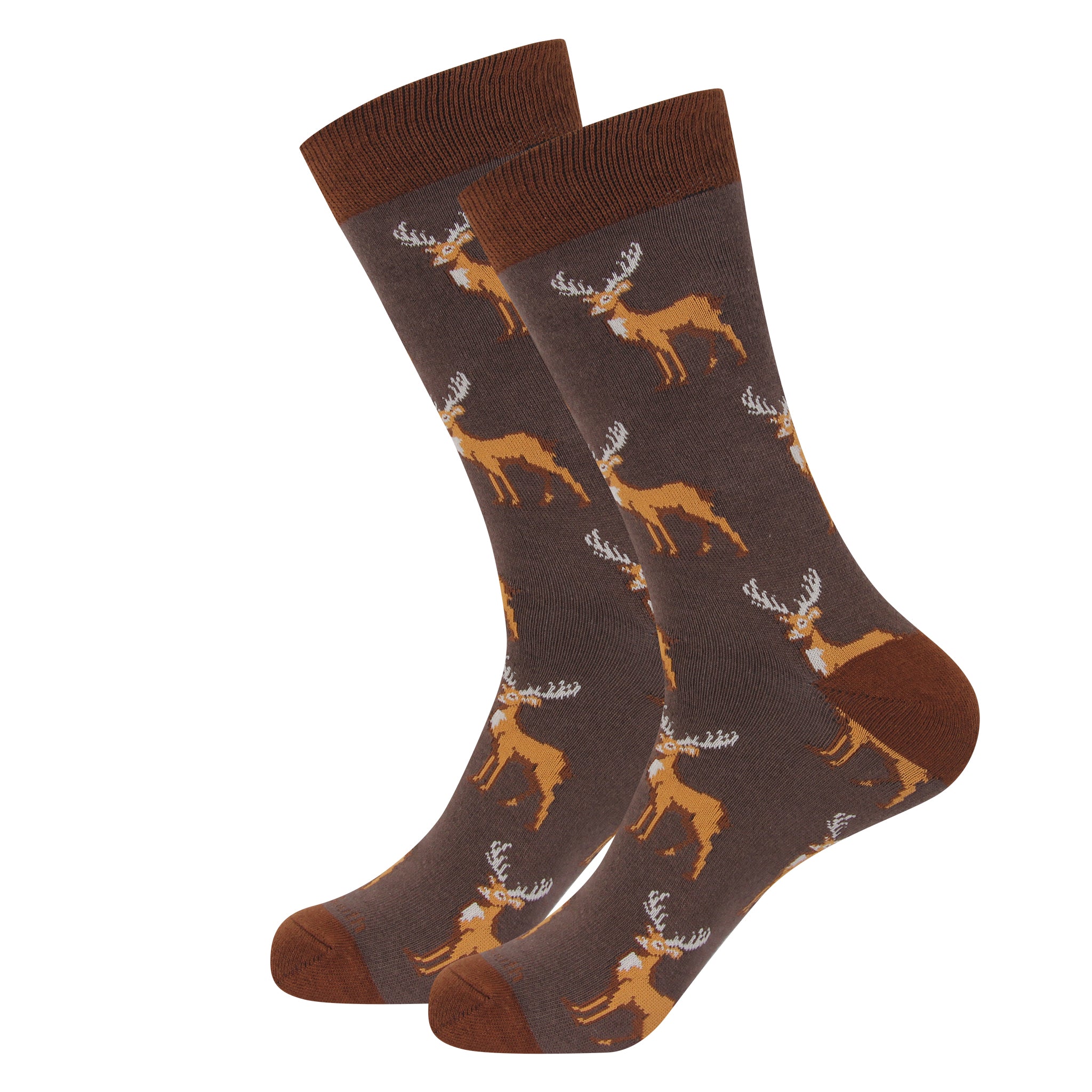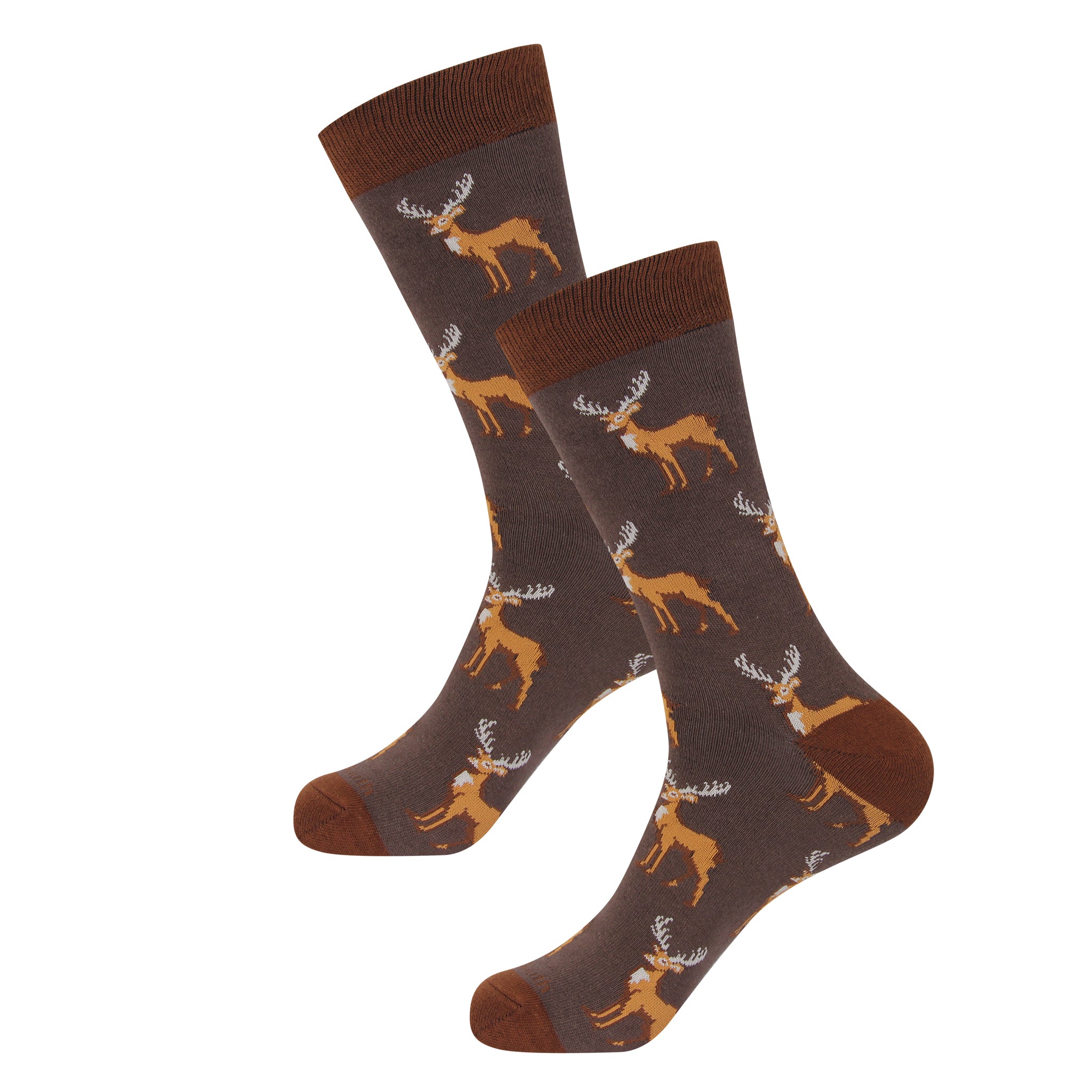 Show off your love for the outdoors with our Deer Pattern Socks. Featuring a repeating stag design with impressive antlers on a rich brown background, these socks are a nod to rustic style and the great outdoors. Crafted from a breathable cotton, polyester, and spandex blend, they’re soft, stretchy, and built for all-day comfort. With a unisex fit and timeless woodland design, they’re perfect for hunters, nature lovers, or anyone who enjoys a classic outdoorsy look.