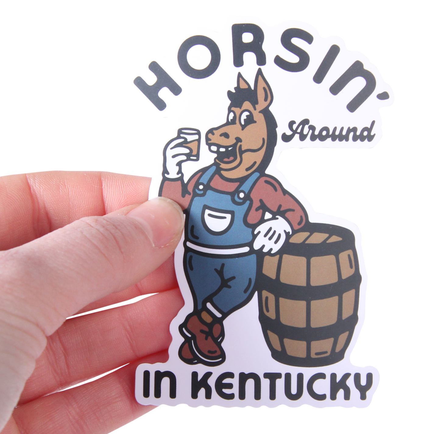 Show your love for the Bluegrass State with this fun Horsin' Around In Kentucky Sticker featuring a laid-back horse casually leaning against a classic bourbon barrel. Perfect for water bottles, laptops, coolers, or anywhere you want to add a touch of Kentucky charm and humor. This playful design captures that carefree "horsin' around" spirit that makes the South so special. Weather-resistant and ready to stick around for the long haul.