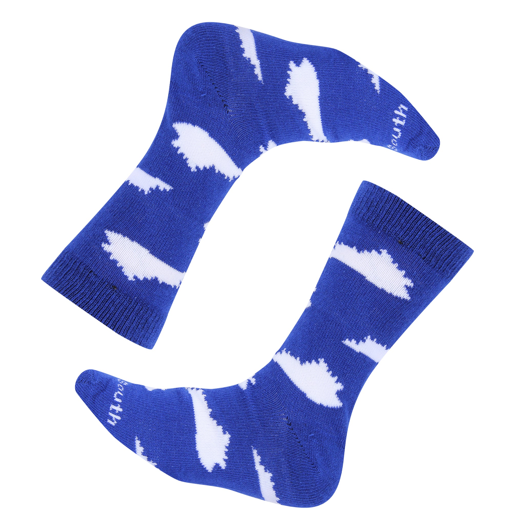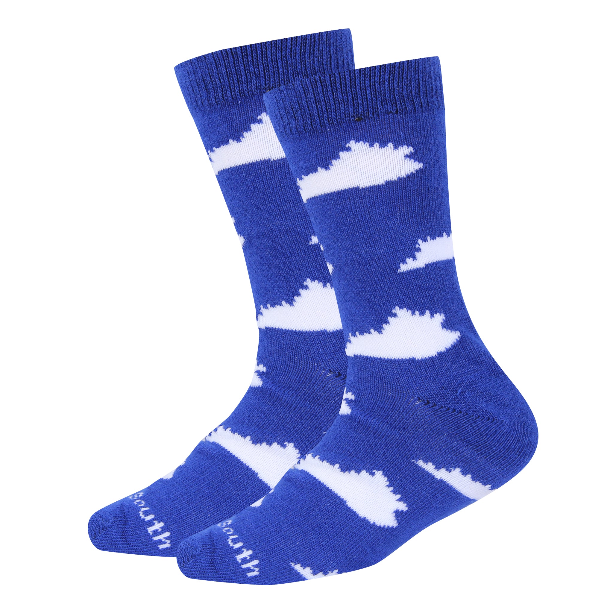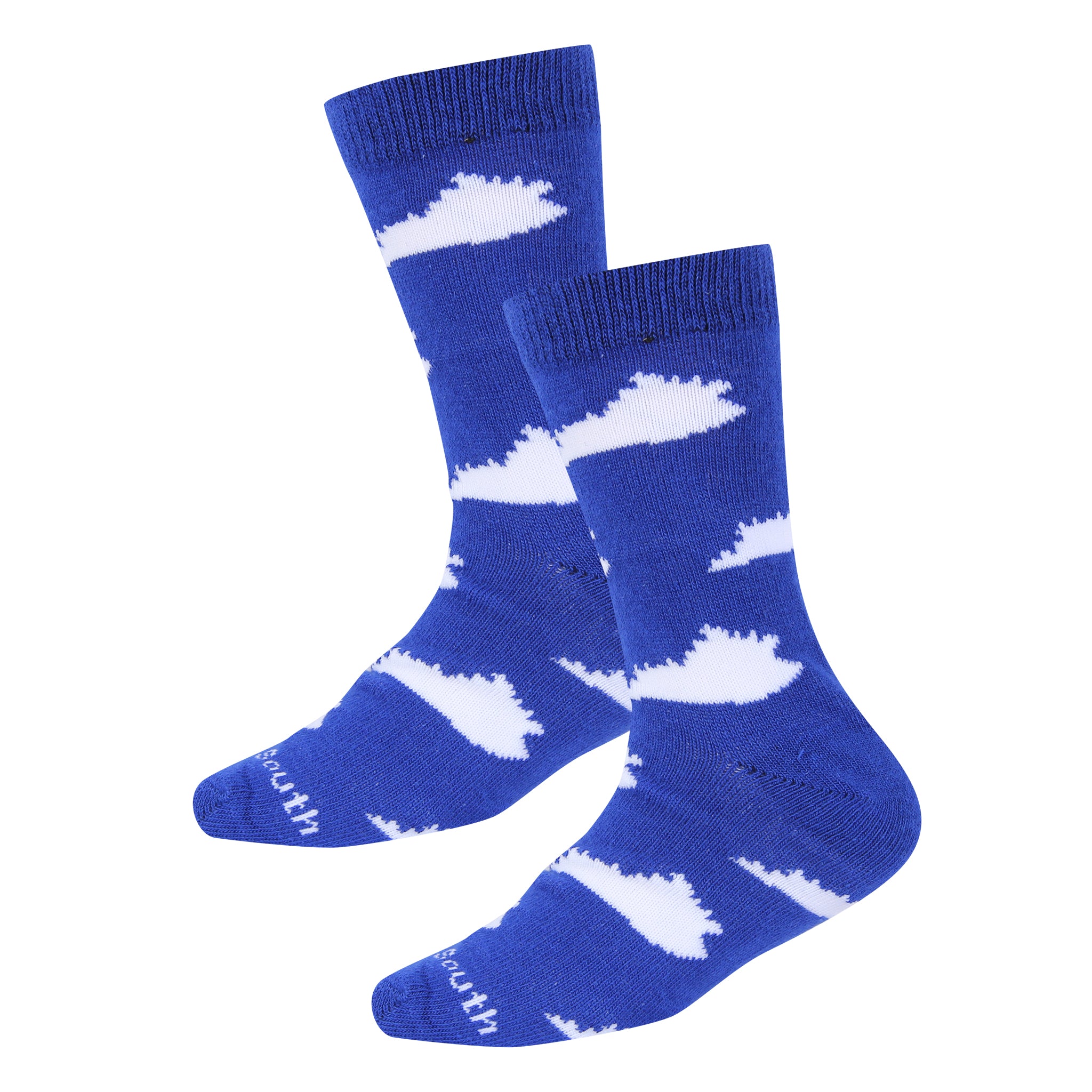 Show off your Kentucky pride with these socks featuring white states of Kentucky all over on a blue sock body.