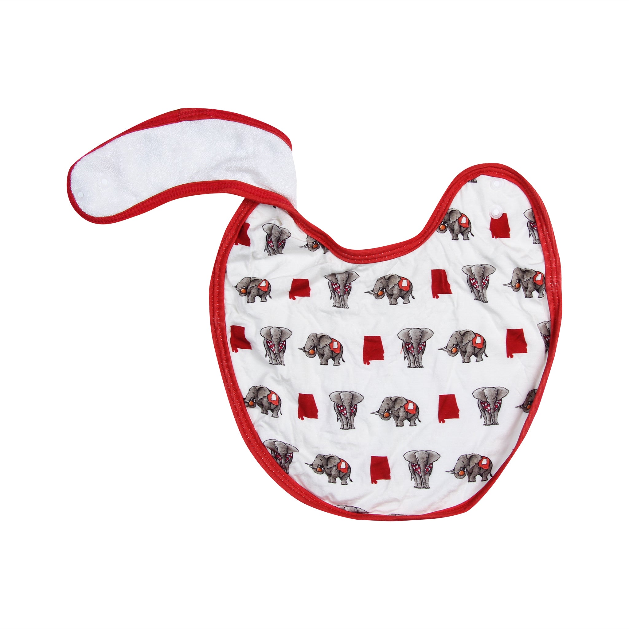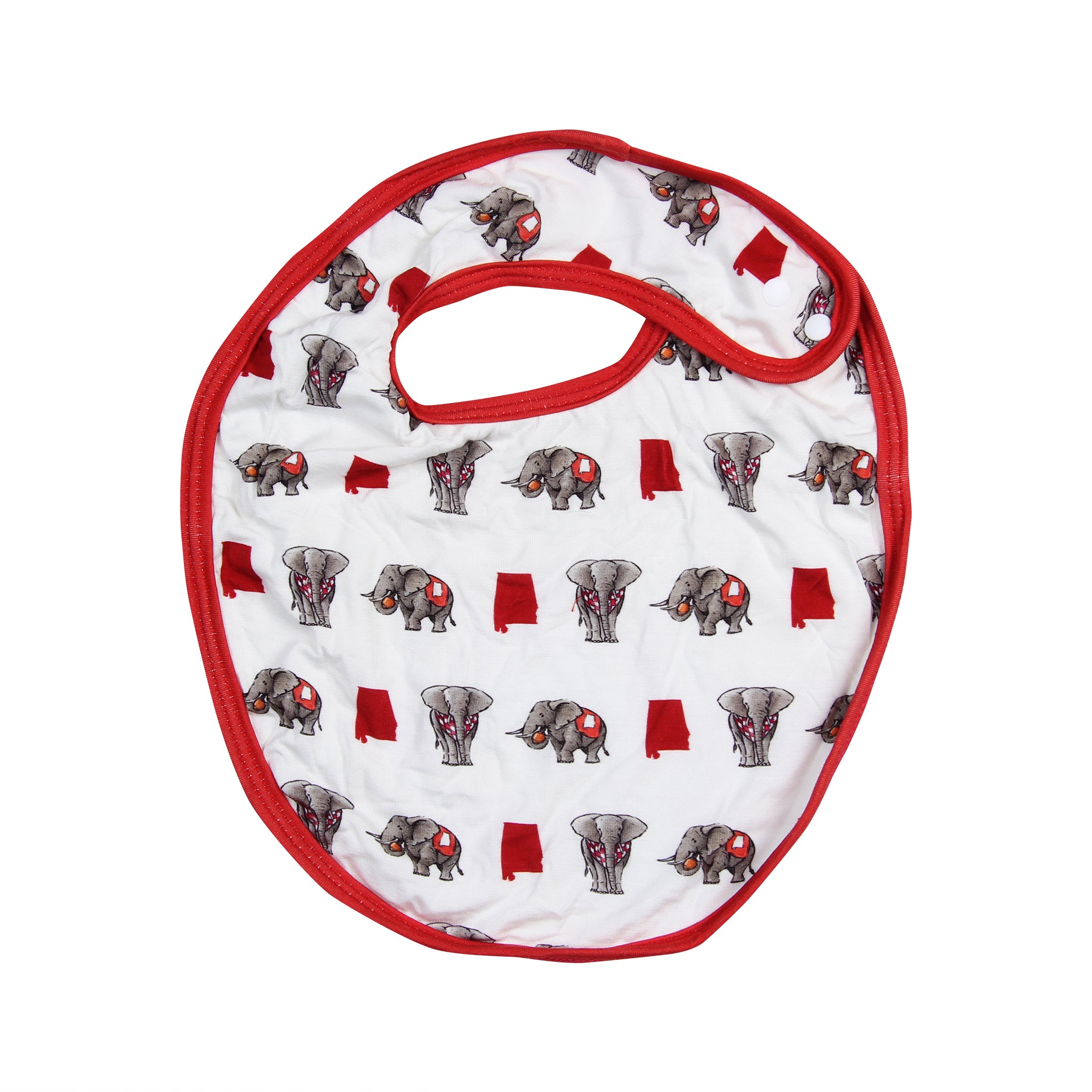 Keep your little one stylish with this Alabama State Shape Unisex Bib featuring a fun mix of red Alabama state silhouettes and adorable elephants in a repeating pattern. Perfect for fans of the South, this bib combines regional pride with whimsical charm. Soft, durable, and easy to clean, it's an ideal gift for babies and toddlers who are ready to show their Alabama spirit from day one.