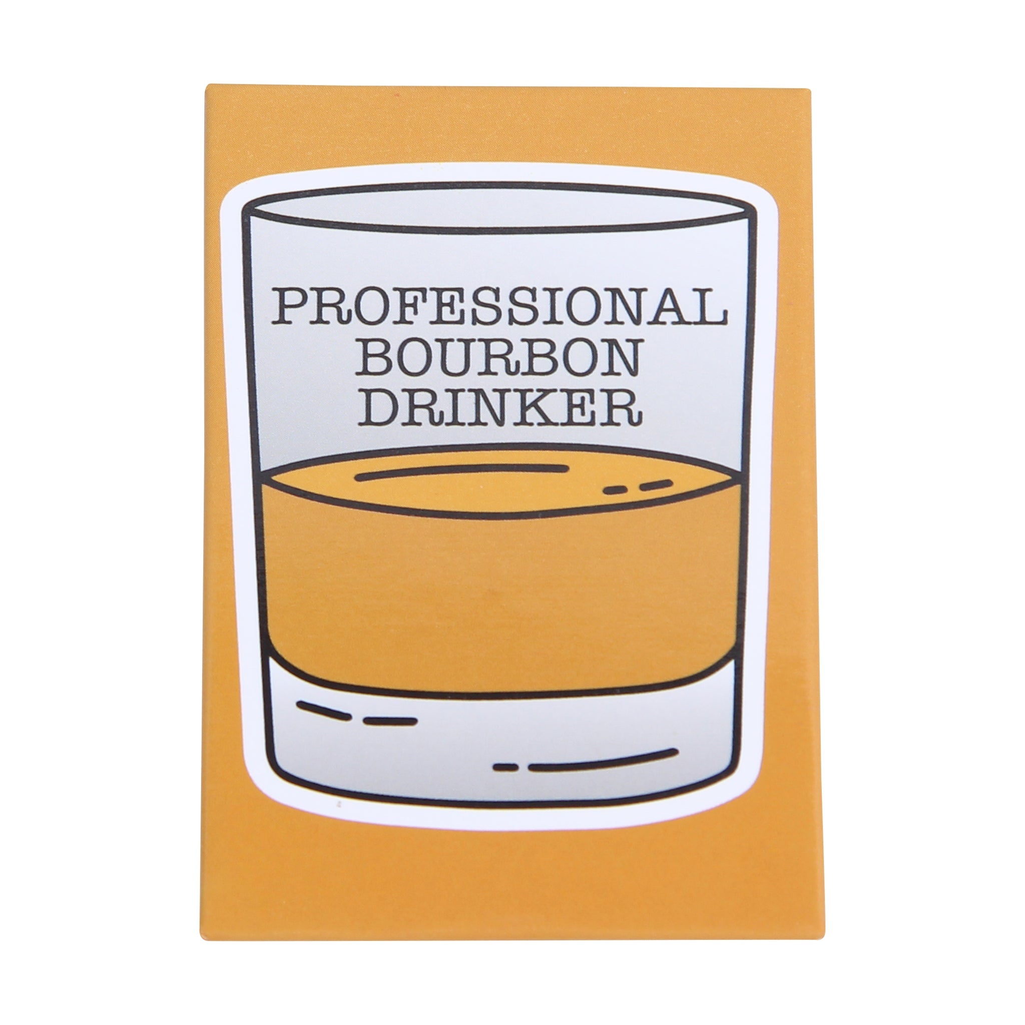 Stick this Professional Bourbon Drinker Magnet on your fridge and let everyone know where your priorities lie. Featuring a charming bourbon glass illustration paired with the declaration "Professional bourbon drinker," it's the perfect tongue-in-cheek accessory for whiskey enthusiasts who don't take themselves too seriously. A fun conversation starter that celebrates your refined taste in spirits.