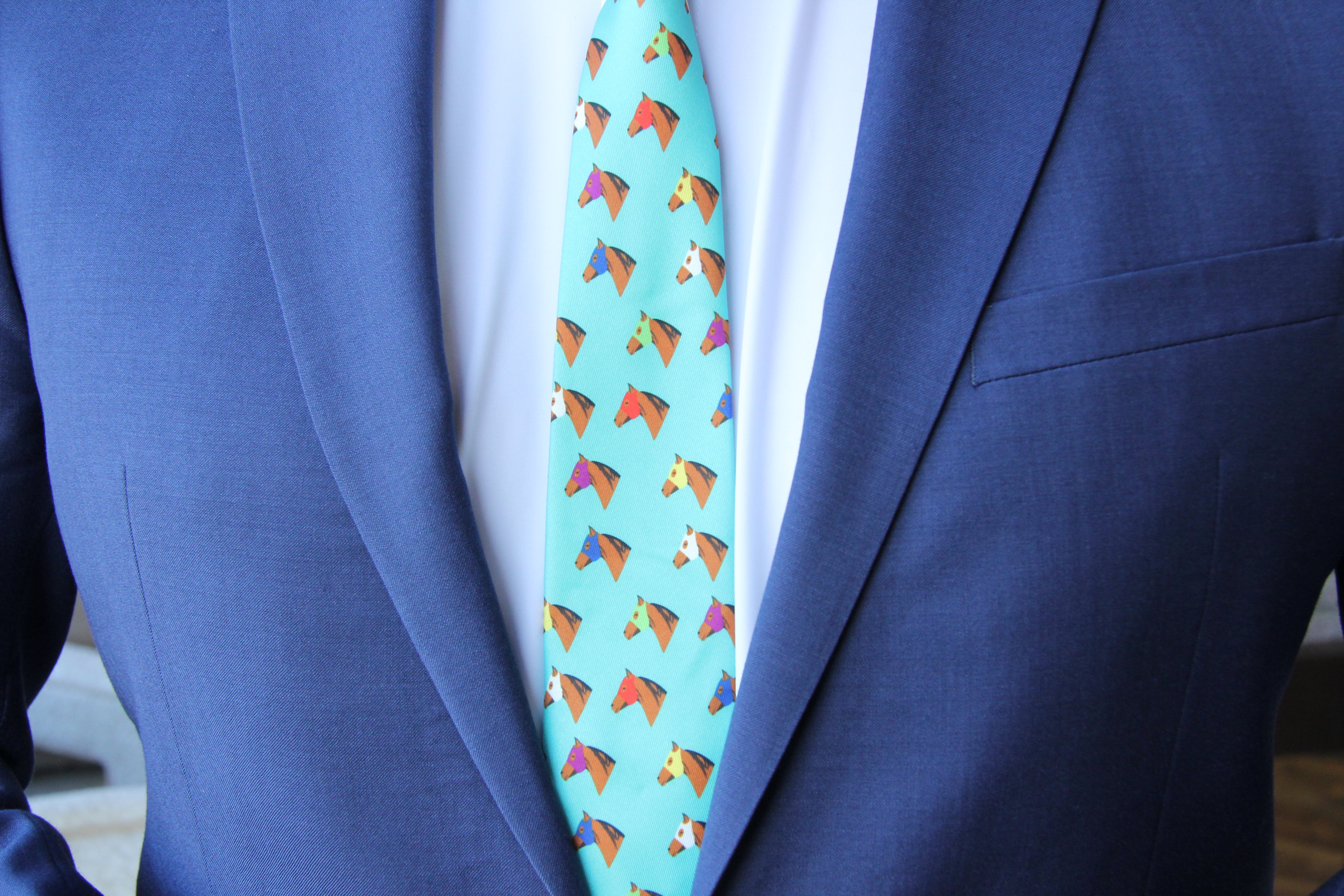 Add a playful touch to your formal attire with our Green Horse Head Horse Racing Necktie. Featuring vibrant horse heads with colorful blinders, this necktie is sure to make a statement at any event. Perfect for horse racing enthusiasts or anyone looking to add some fun to their wardrobe.