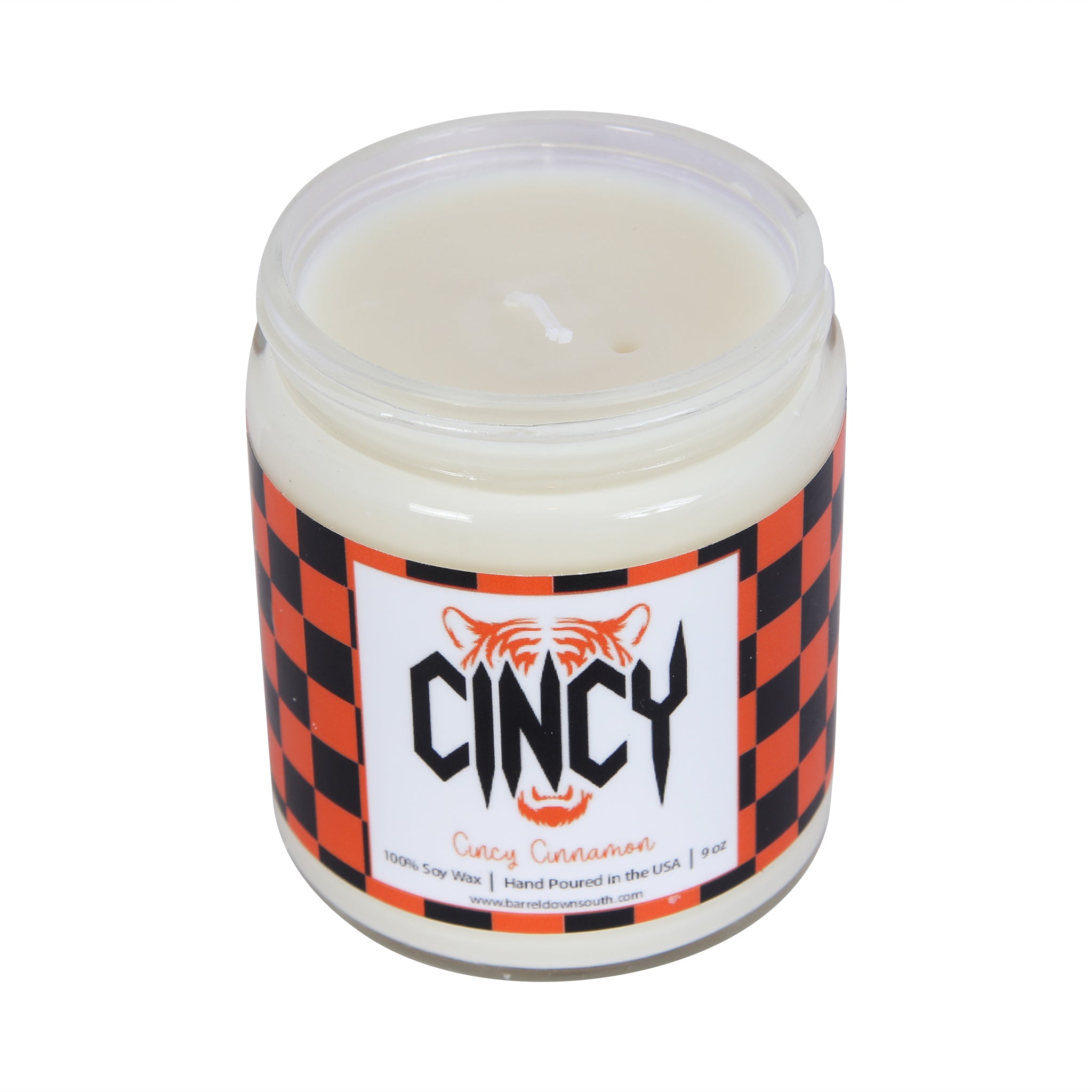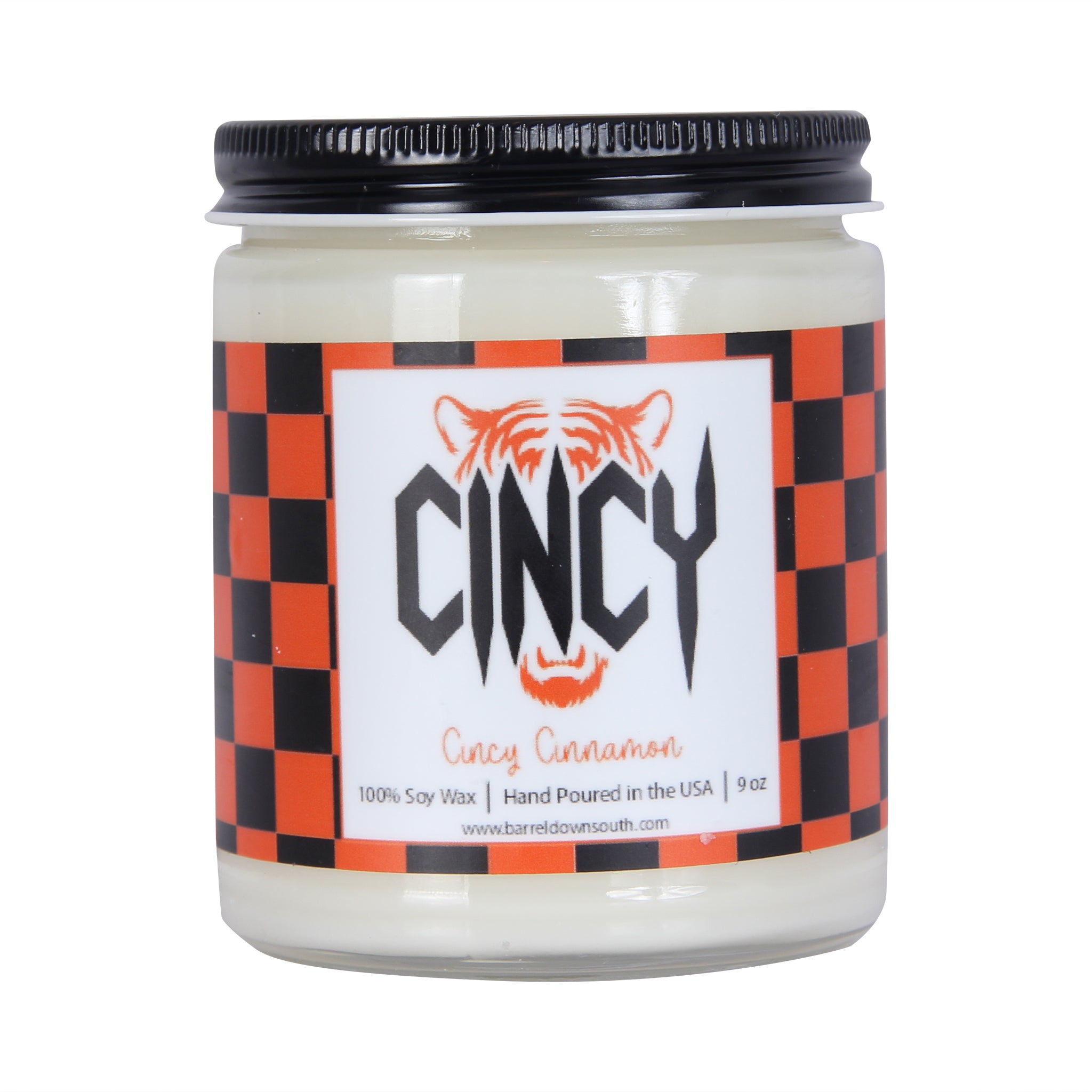 Light up your space with a touch of Cincinnati pride! Our Cincy Tiger Candle brings the warmth of homegrown flavor with its signature Cincy Cinnamon scent—a spicy, sweet blend that captures the spirit of the Queen City. Perfect for fans who want to show their Ohio love while filling their home with an irresistible aroma. Whether you're a native or just a devoted supporter, this candle is your ticket to cozy vibes with a local twist.