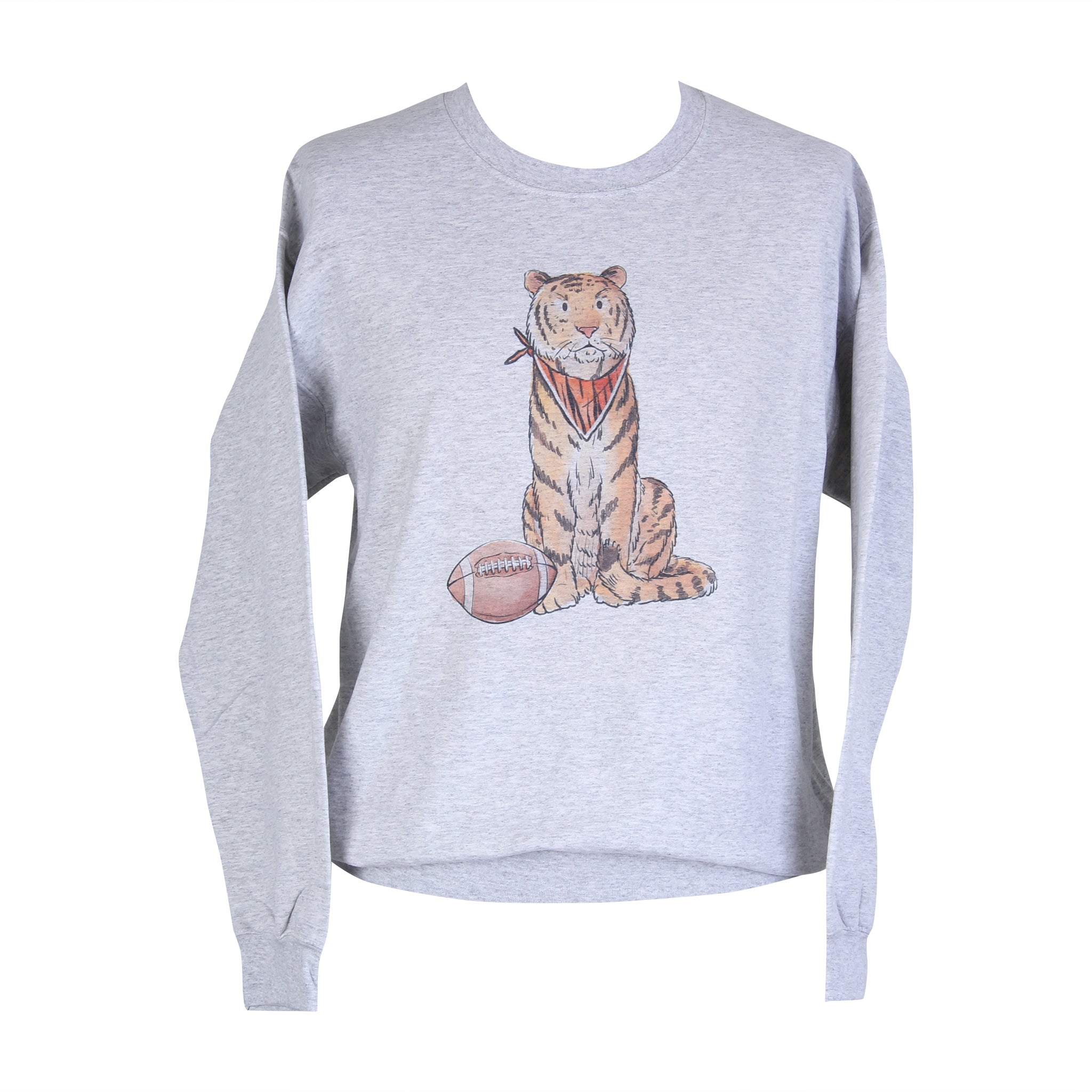 Show your Cincinnati spirit in style with this cozy Sitting Bengal Tiger Sweatshirt featuring an illustrated tiger ready for game day. Dressed in an orange bandana and sitting proudly beside a football, this design perfectly blends vintage charm with Cincinnati pride.