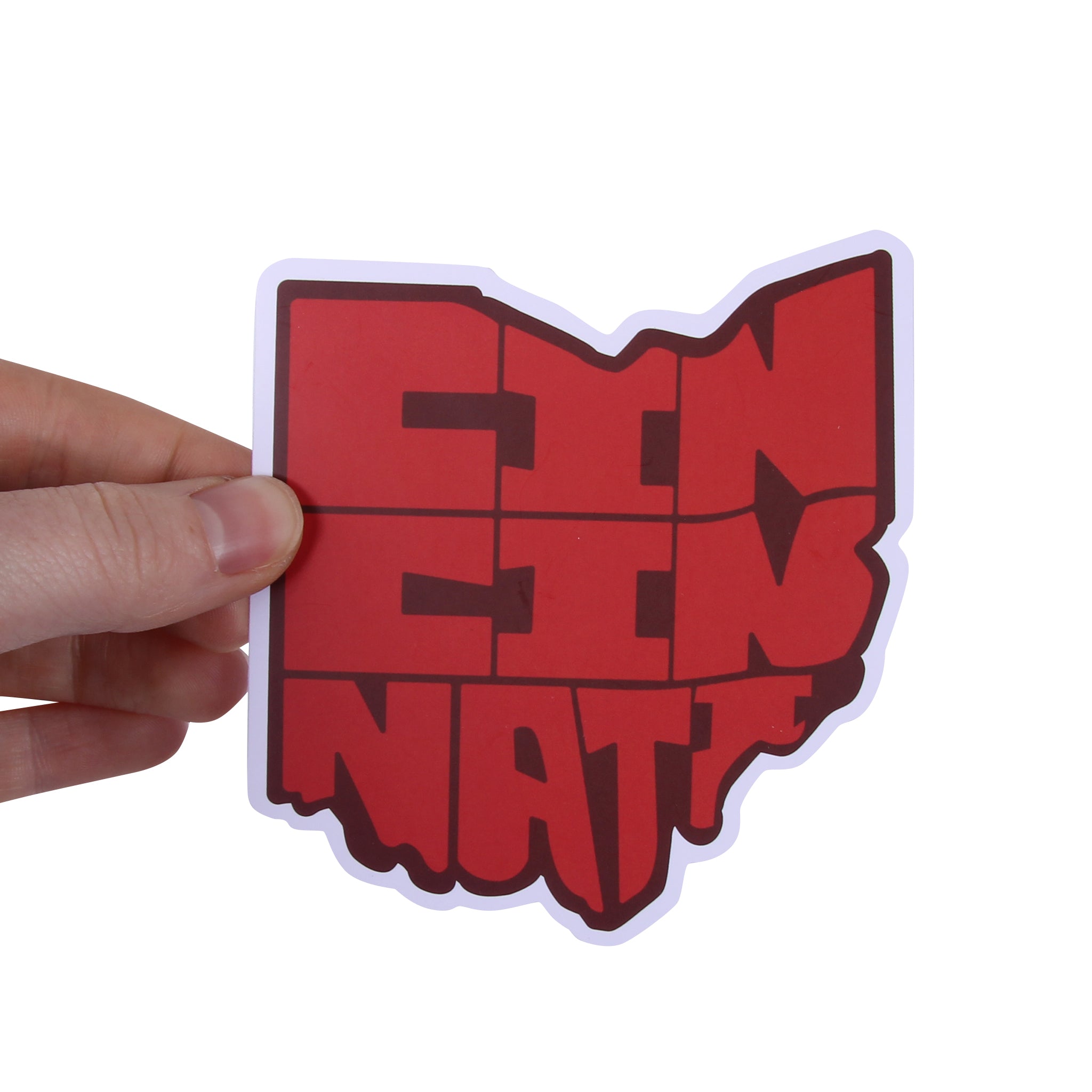 Show your Cincinnati pride with this bold red Cincinnati Ohio State Shape Sticker featuring Ohio's iconic state shape filled with the word "Cincinnati" in eye-catching lettering. Perfect for laptops, water bottles, car windows, or anywhere you want to rep the Queen City. Durable vinyl construction withstands weather and wear, making it ideal for indoor or outdoor use. A fun way to celebrate your connection to Cincinnati!