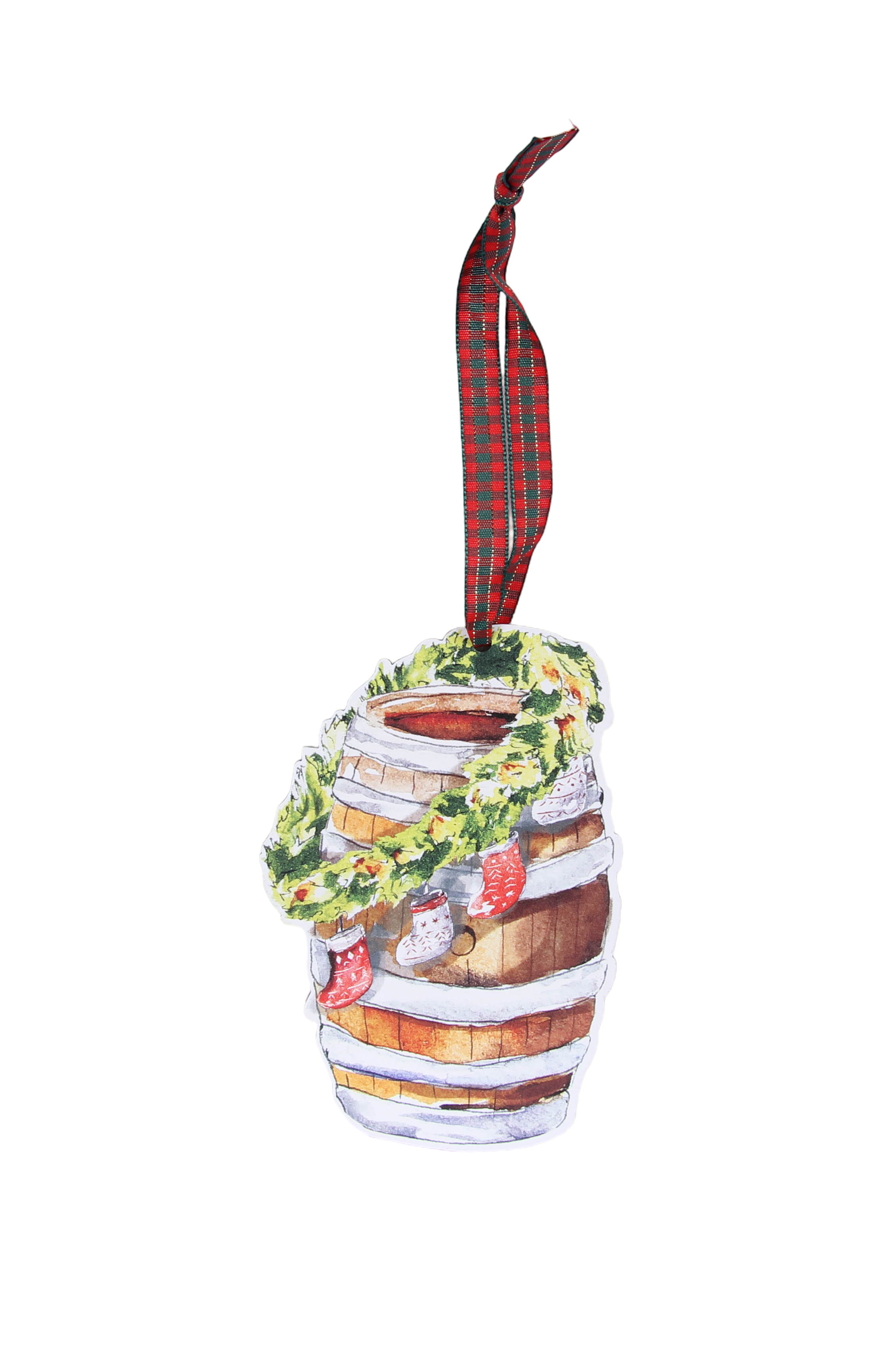 Add southern charm and spirited cheer to your tree with this Bourbon Barrel With Wreath and Stockings Ornament! Featuring a festive illustration of a classic bourbon barrel decked out with a holiday wreath and hanging stockings, this ornament is the perfect blend of rustic coziness and holiday spirit.