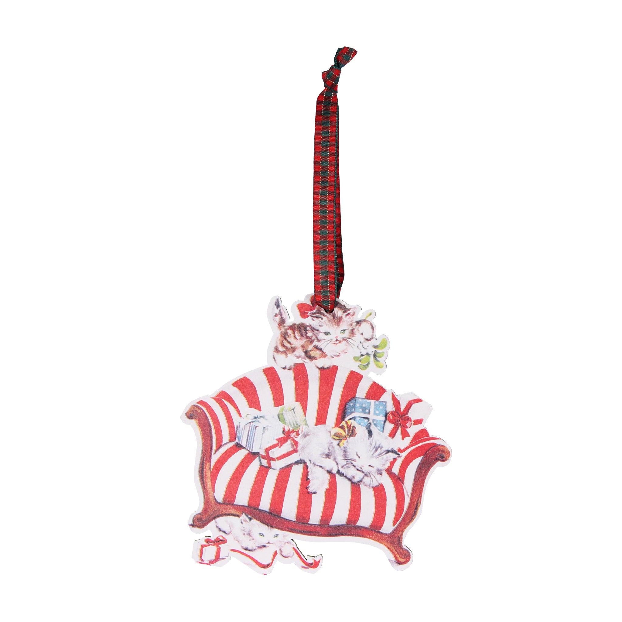 Printed with vibrant, long-lasting colors, this charming ornament is a must-have for cat lovers and collectors of unique holiday decorations. The cozy chair design adds a nostalgic touch, while the festive details make it a standout addition to any Christmas tree.
