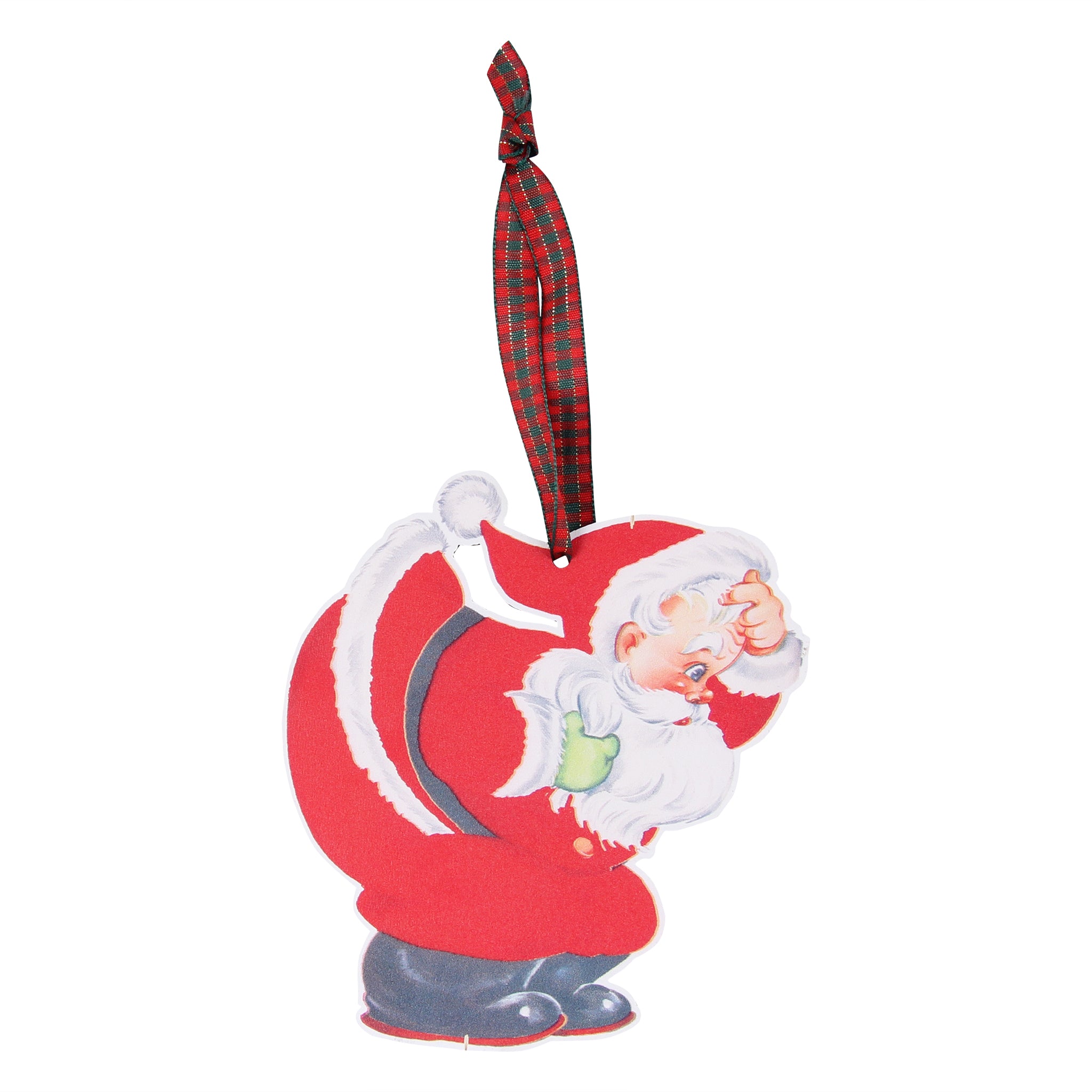 Printed with vivid, festive colors, this humorous Santa ornament is perfect for adding a playful twist to your Christmas tree décor. The cartoon-like expression and relatable pose make it a standout favorite for families who love a little fun with their holiday traditions.