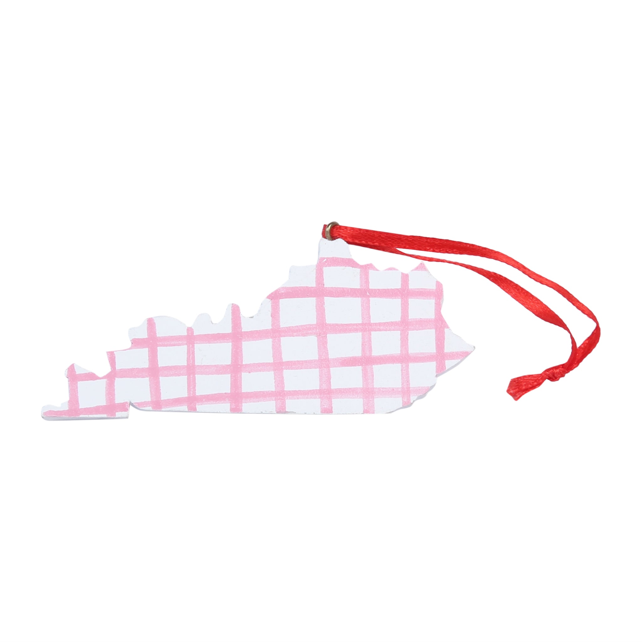 Celebrate the Bluegrass State in style with this charming resin ornament shaped like Kentucky. Featuring a playful grid of pink stripes running both vertically and horizontally, it's a fun way to show your state pride or gift it to a fellow Kentucky lover. Perfect for tree decorating, shelf displaying, or adding a pop of color to your holiday collection. A delightful keepsake that brings Southern charm to any space.