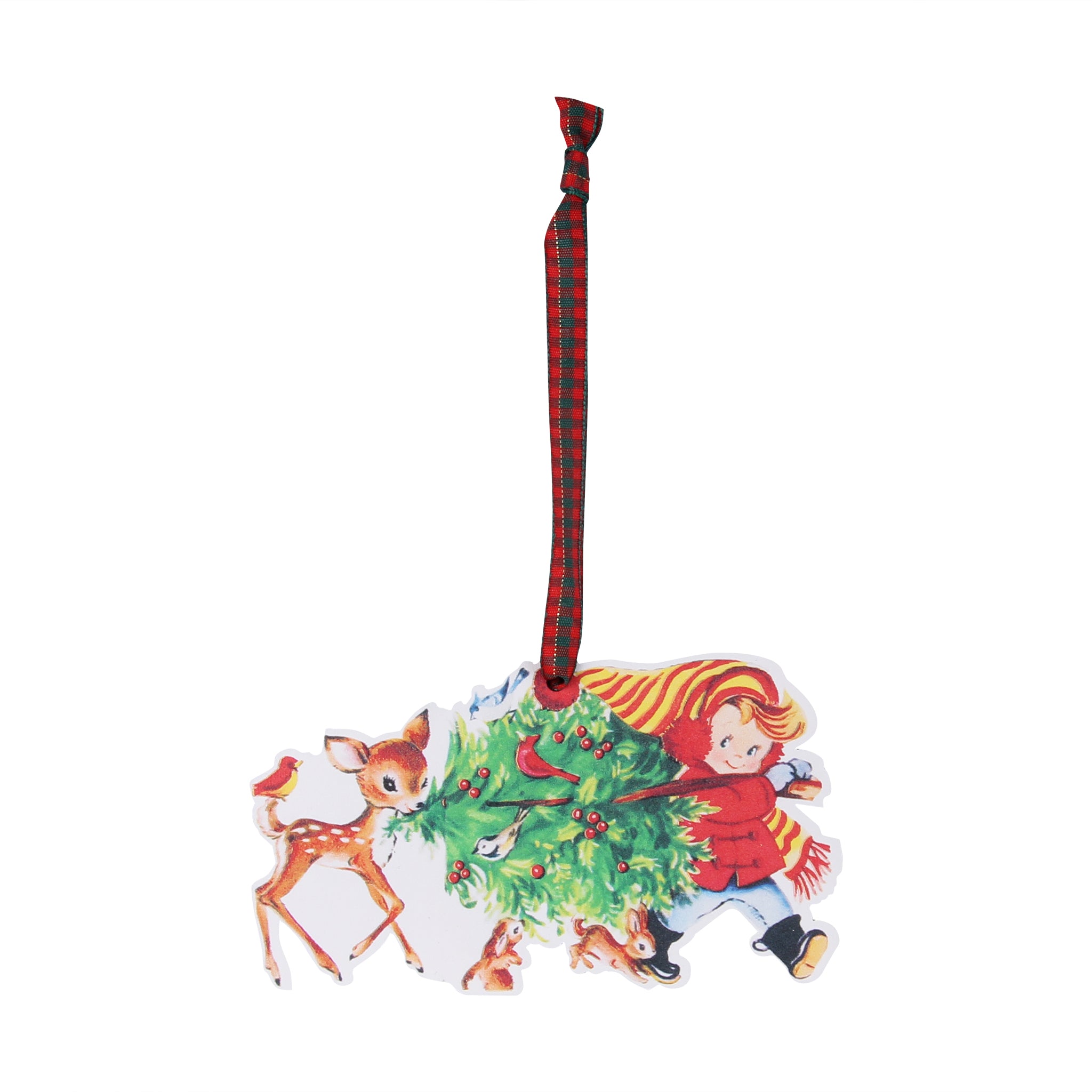 Reindeer and Boy Carrying Tree Christmas Ornament
