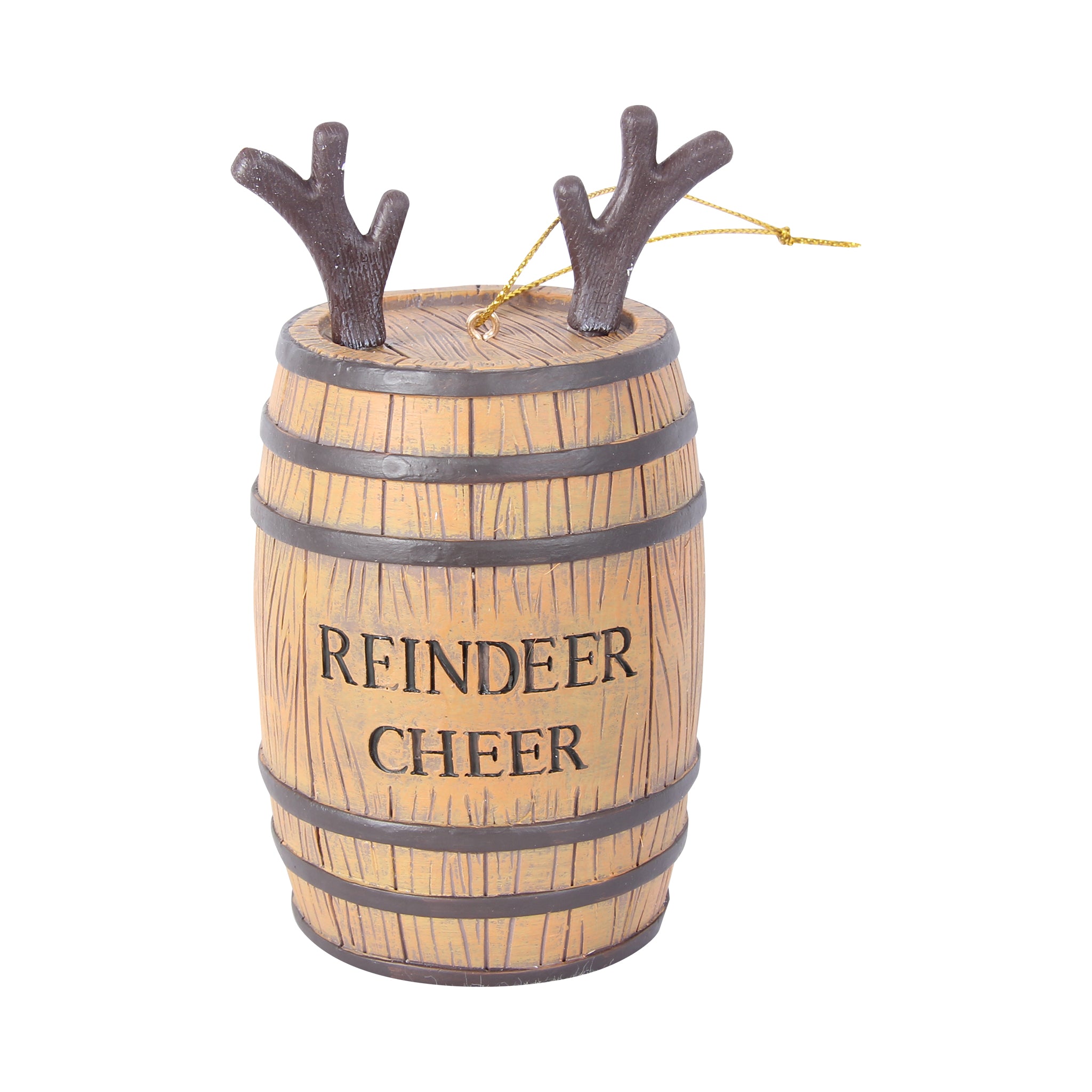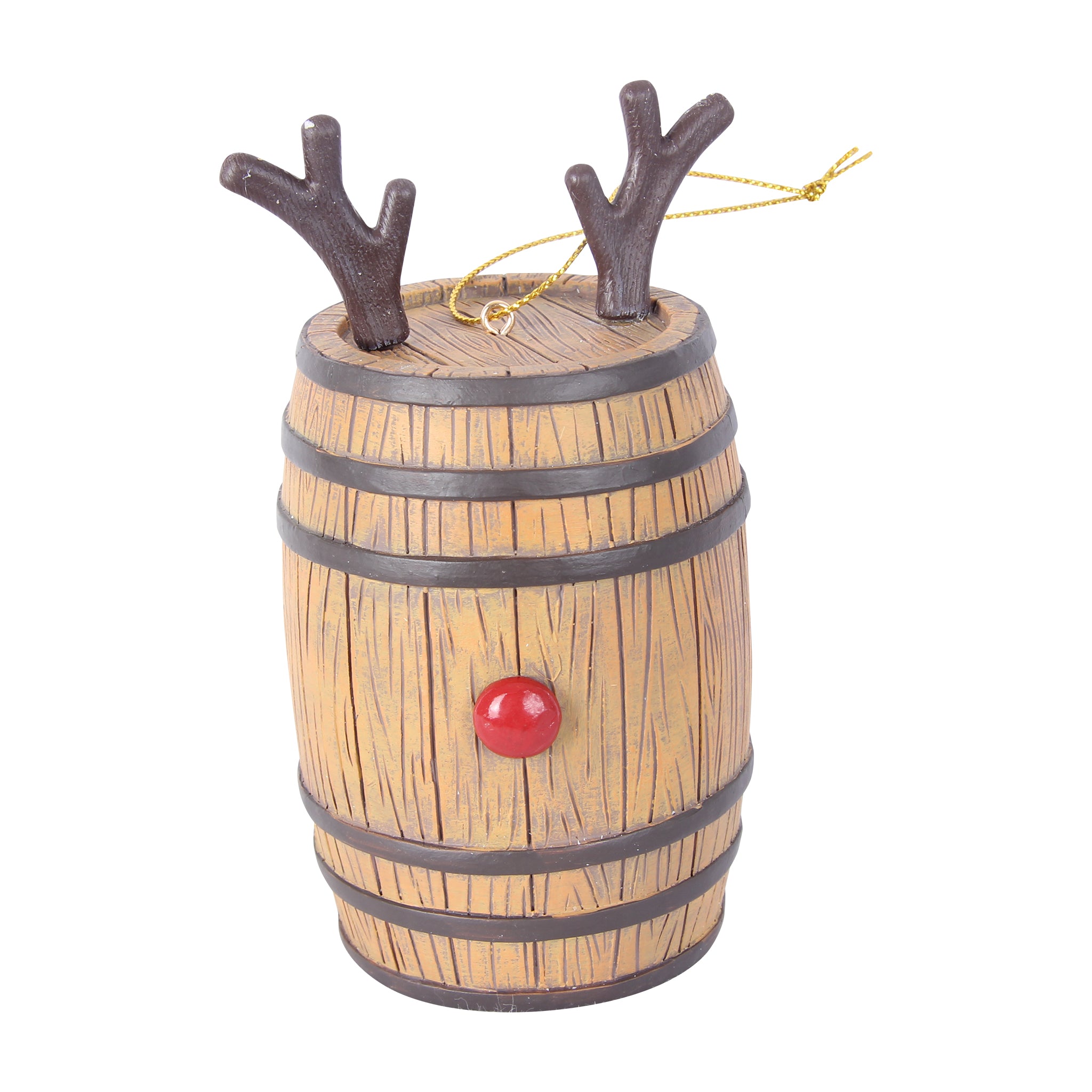 Add a touch of holiday humor to your tree with this Reindeer Cheer Bourbon Christmas Ornament! Crafted from durable resin, it’s shaped like a rustic wooden barrel, complete with antlers peeking out the top and a bright red nose on the back—bringing Rudolph’s festive spirit to life in a fun and unique way.