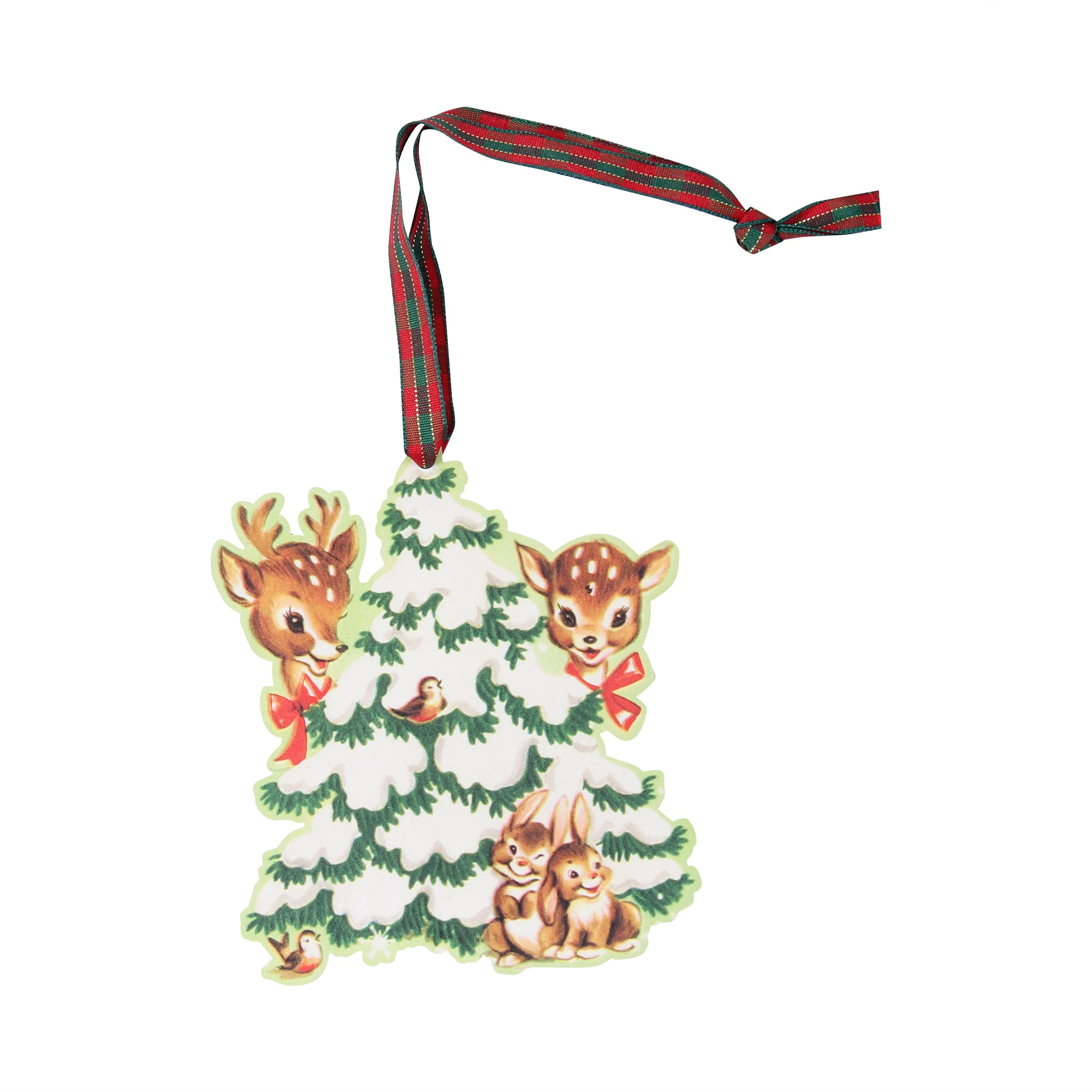 Bring festive woodland magic to your Christmas tree with this delightful Reindeer In Christmas Tree Ornament! Featuring adorable reindeer playfully peeking out from behind a beautifully snow-covered Christmas tree, this ornament captures the whimsy and wonder of the holiday season.