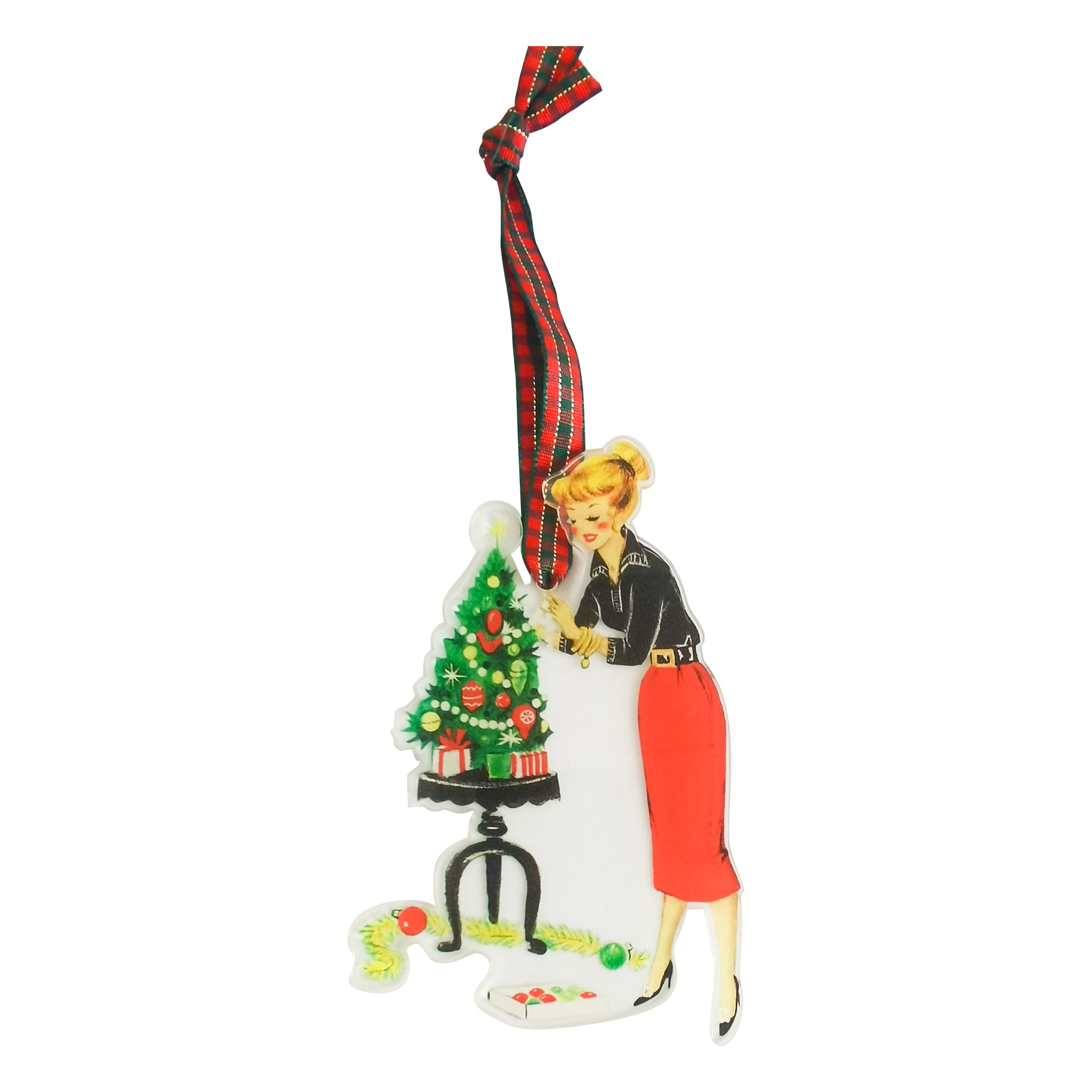 Celebrate the cozy magic of the holidays with this Woman at Tree Acrylic Christmas Ornament featuring a festive illustration of a woman carefully decorating a small Christmas tree. From twinkling lights to treasured ornaments, this sweet scene captures the heartwarming tradition of turning a simple tree into a symbol of holiday joy.