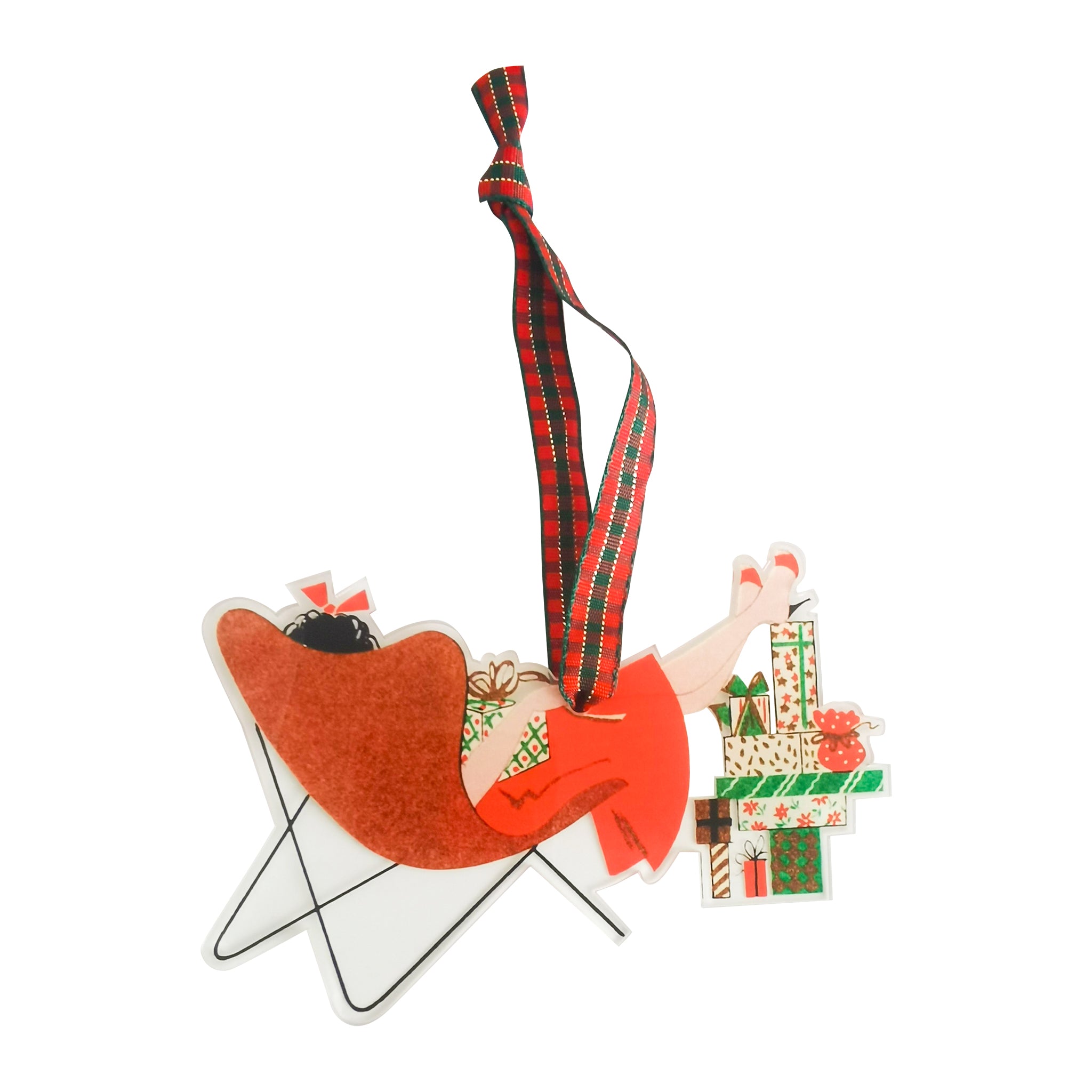 Celebrate the season of giving and relaxing with this Woman Feet Kicked Up Acrylic Christmas Ornament! Featuring a playful illustration of a woman in cozy holiday style, lounging in a chair with her feet propped up on a towering pile of wrapped gifts, this ornament captures the ultimate mood of post-shopping satisfaction and well-earned holiday rest.