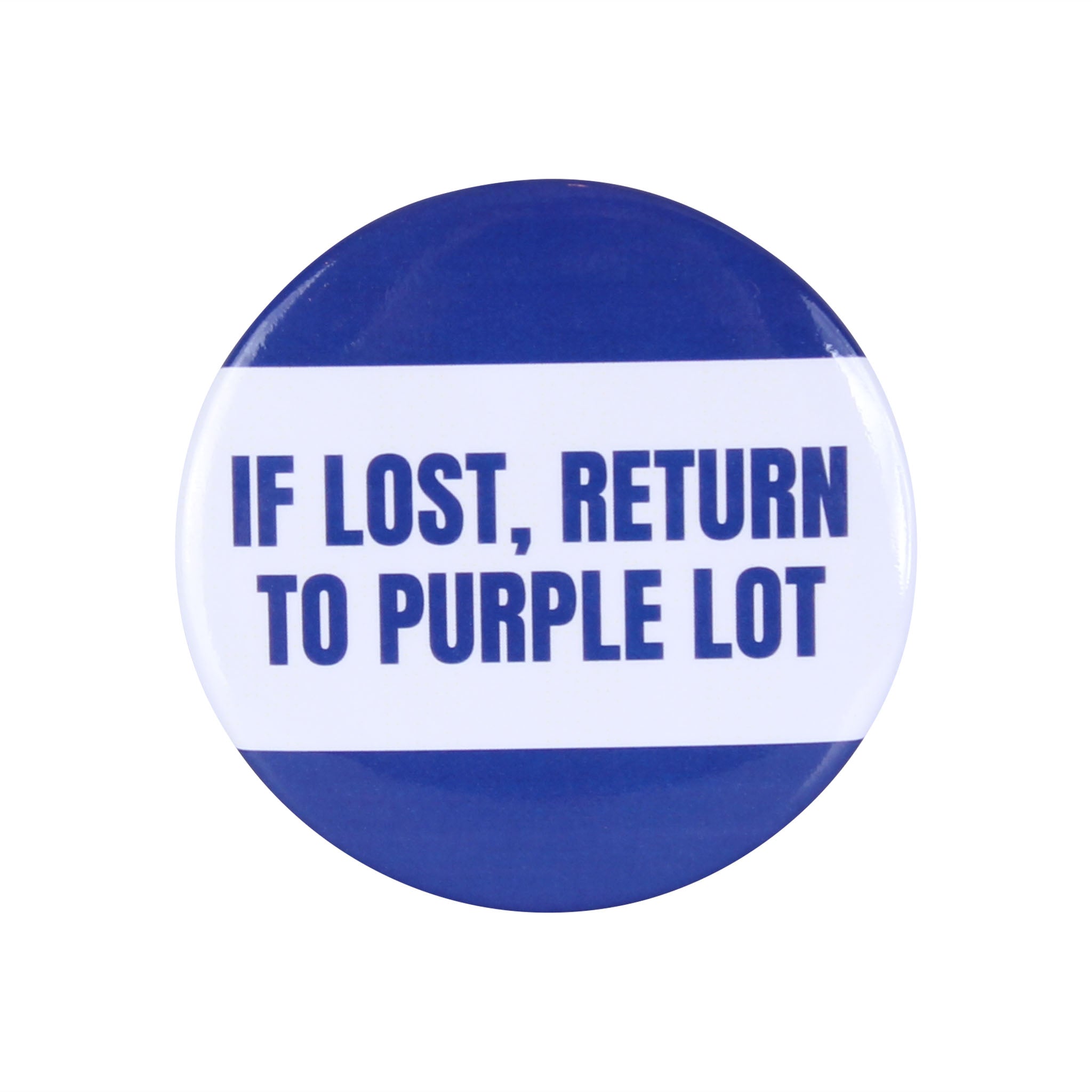 Show your tailgate spirit with the If Lost Return to Purple Lot Button Pin! Perfect for football fans who want a fun way to stay connected, this playful pin adds a splash of color and humor to your game day outfit.