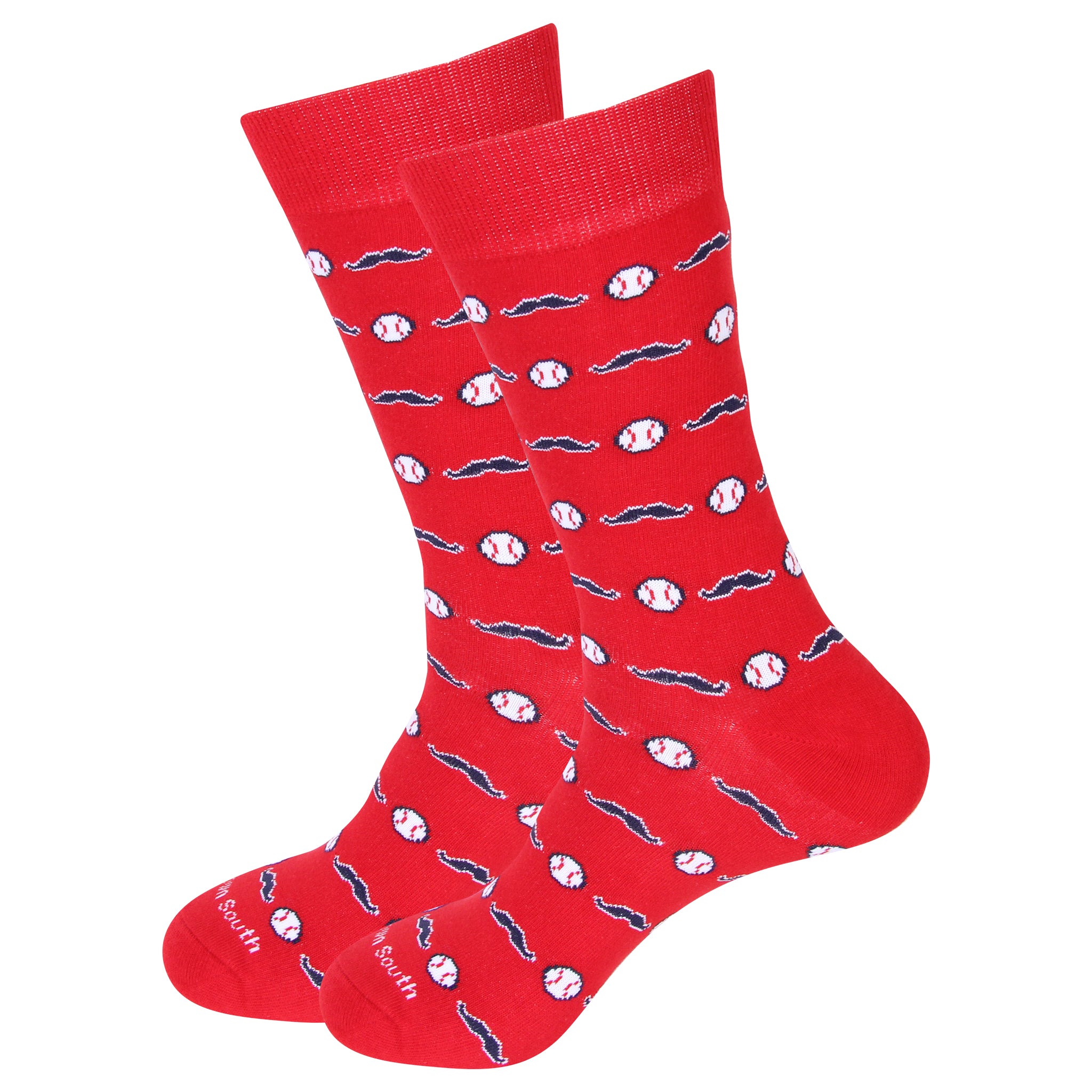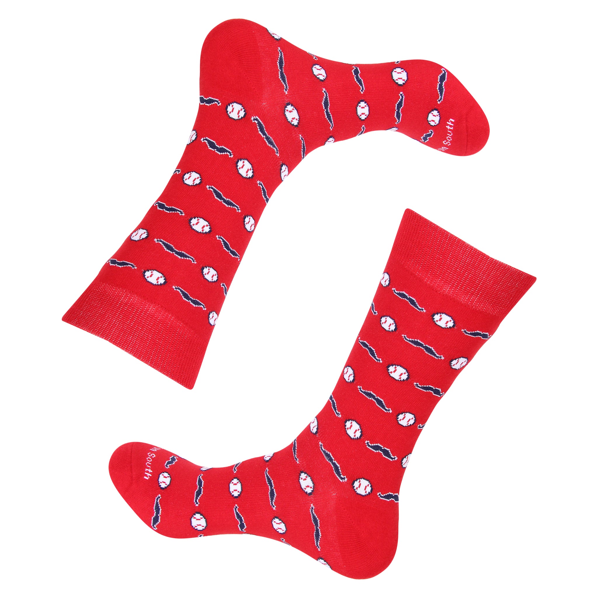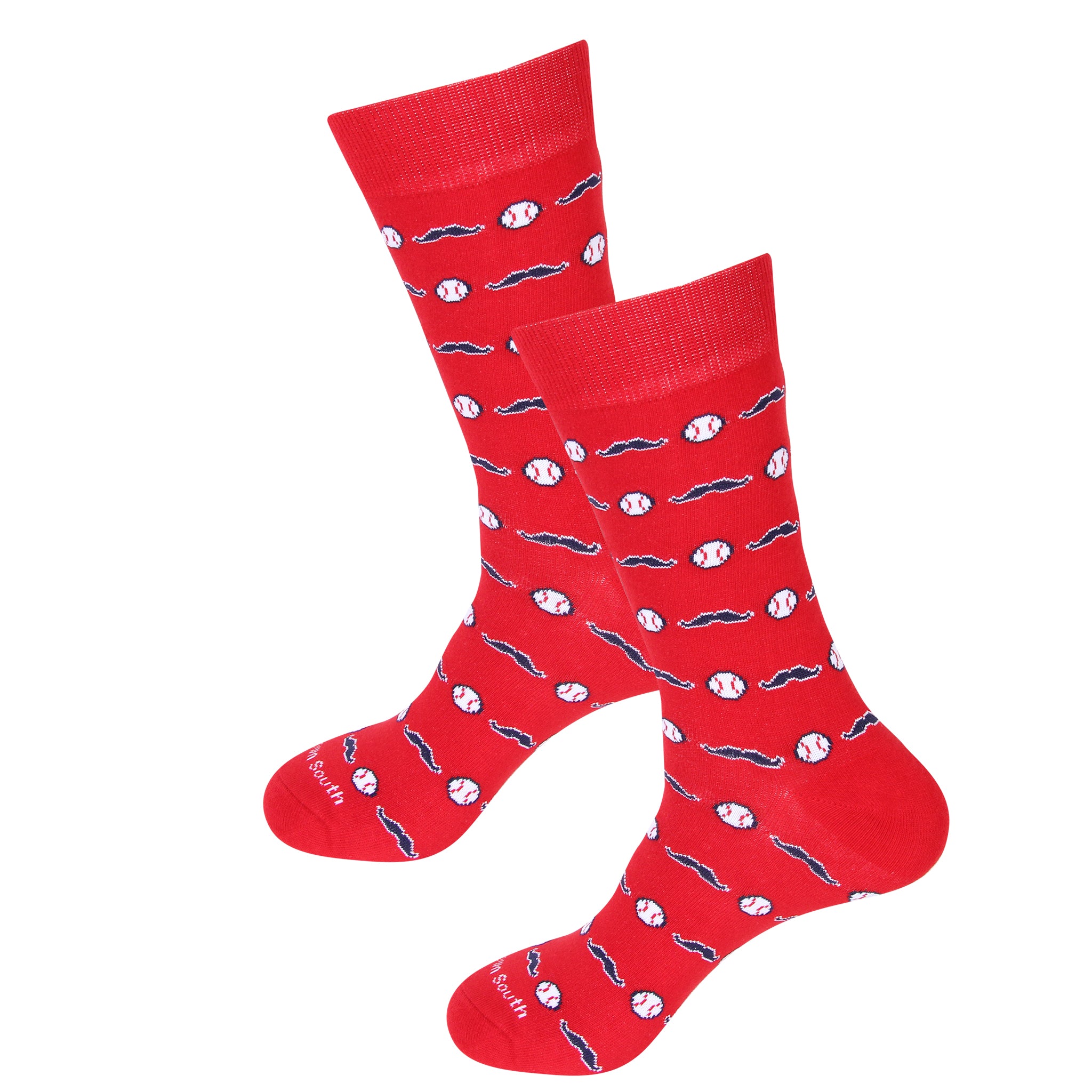 Step up to the plate with our Red Baseball and Mustache Socks, designed for ultimate baseball fans! These novelty socks feature a playful baseball and mustache pattern that serves as the perfect gift for baseball enthusiasts! Whether you're cheering for your favorite team at a Cincinnati baseball game or simply celebrating your love for the sport, these socks are a perfect fit.