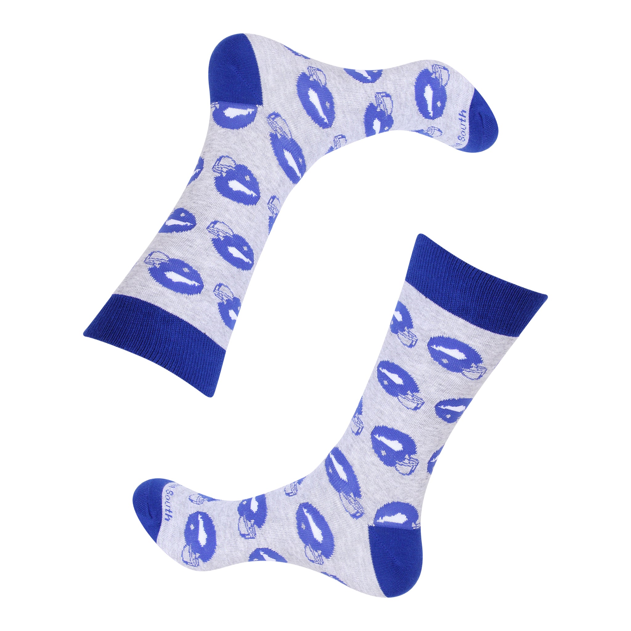 Elevate your Kentucky game day wardrobe with our Kentucky Football Helmet Socks featuring a Big Blue design that showcases the iconic shape of Kentucky. Perfect college football Saturdays, these socks combine comfort and style, making them the perfect gift for any football enthusiast.