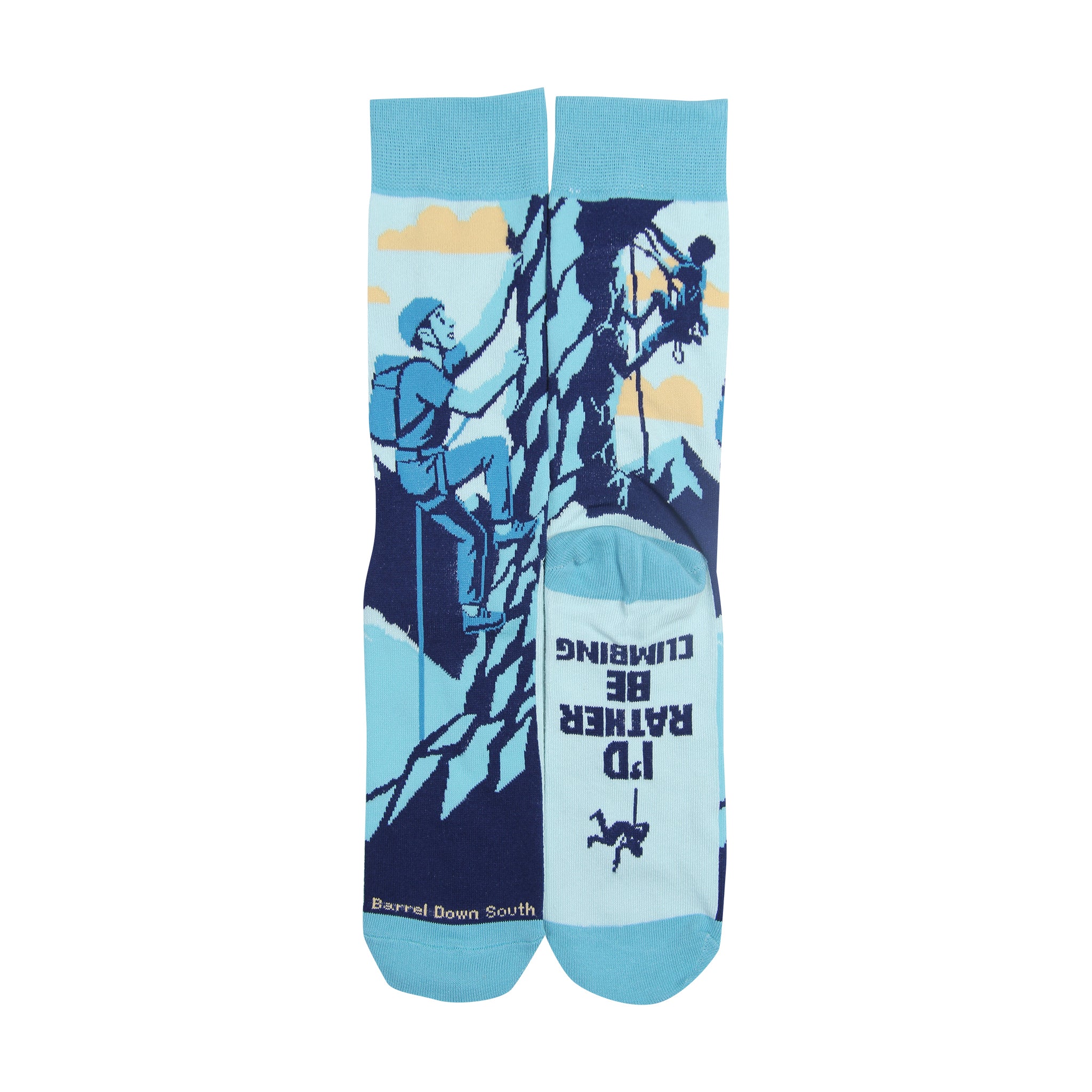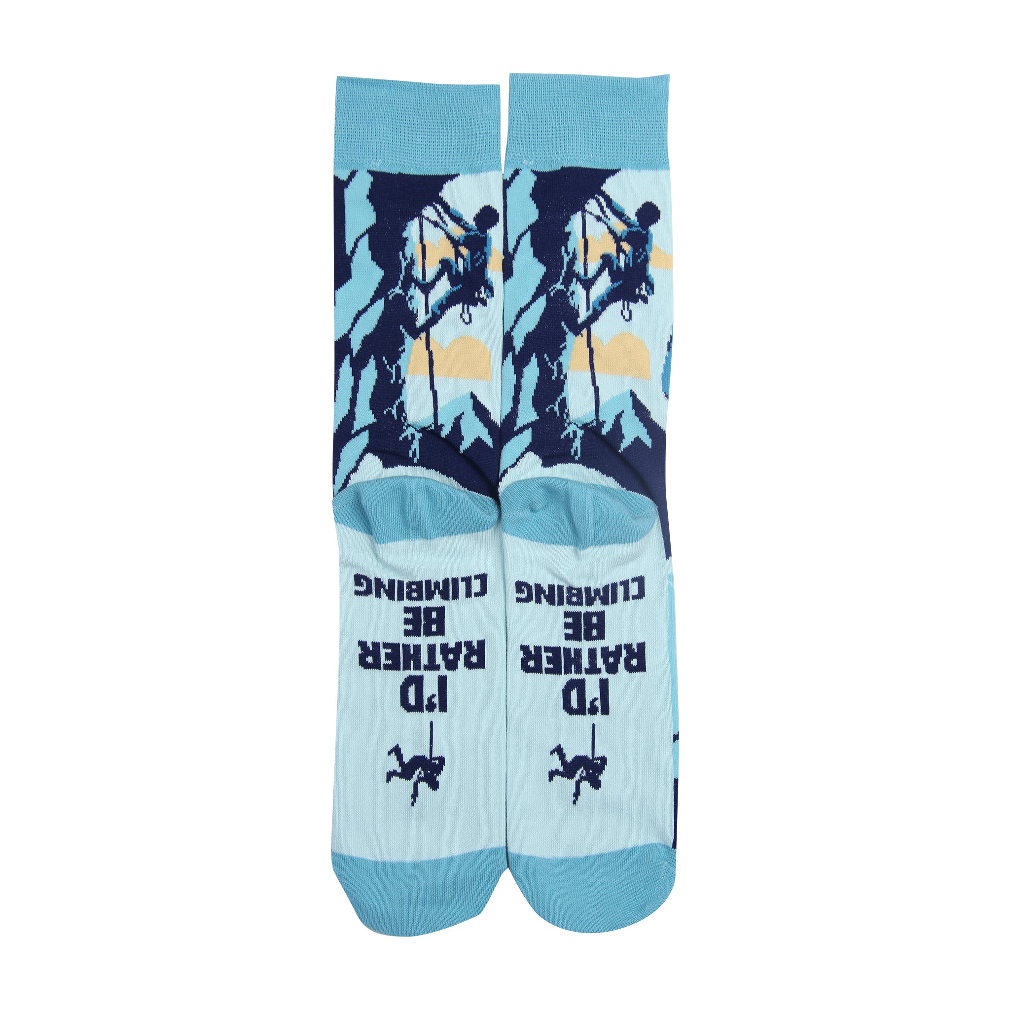 For those who live for the next ascent, our I’d Rather Be Climbing Socks say it all. Featuring a bold mountain-climbing scene and the phrase “I’d Rather Be Climbing,” these socks are perfect for adventurers, climbers, and outdoor enthusiasts. Made from a breathable cotton, polyester, and spandex blend, they’re soft, stretchy, and built for all-day comfort—whether you’re on the wall, hitting the trails, or relaxing after a climb. With a unisex fit and eye-catching design, they’re a must-have for anyone who dreams of higher peaks.