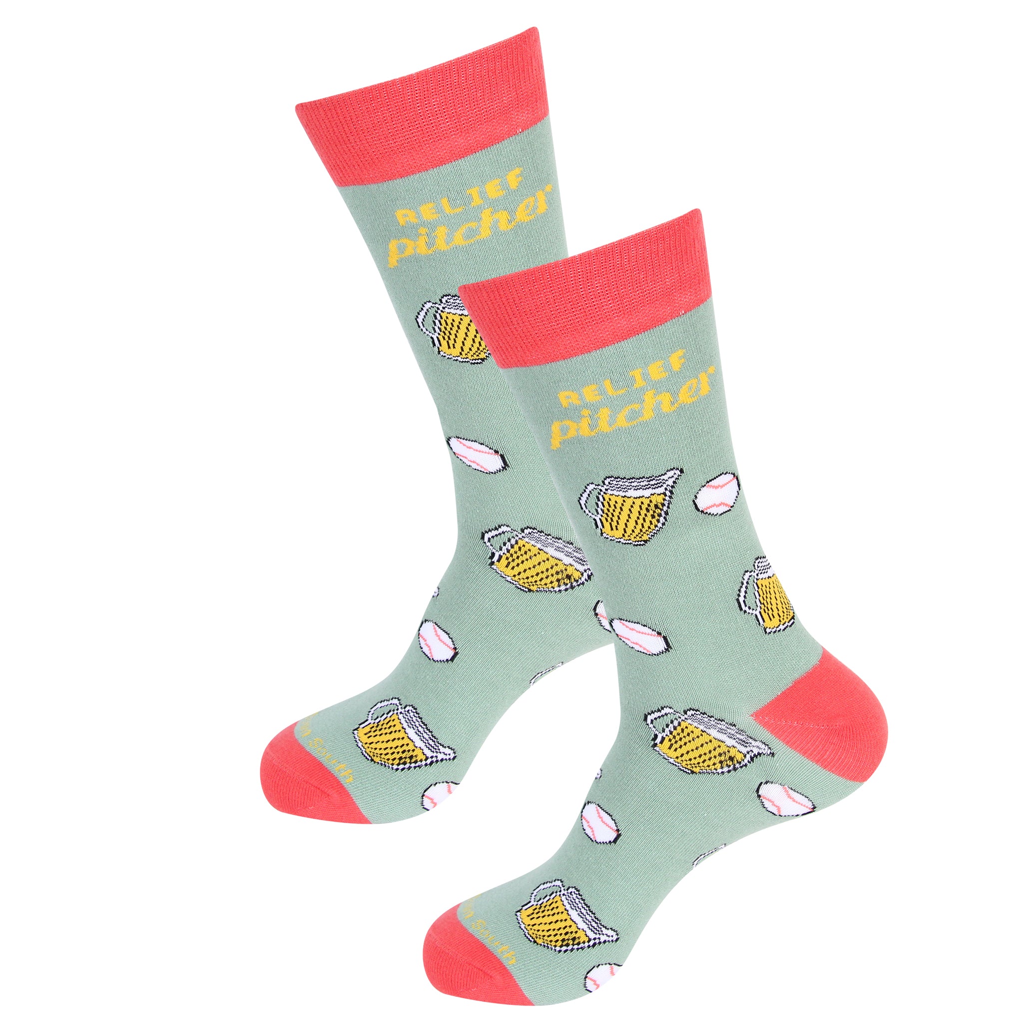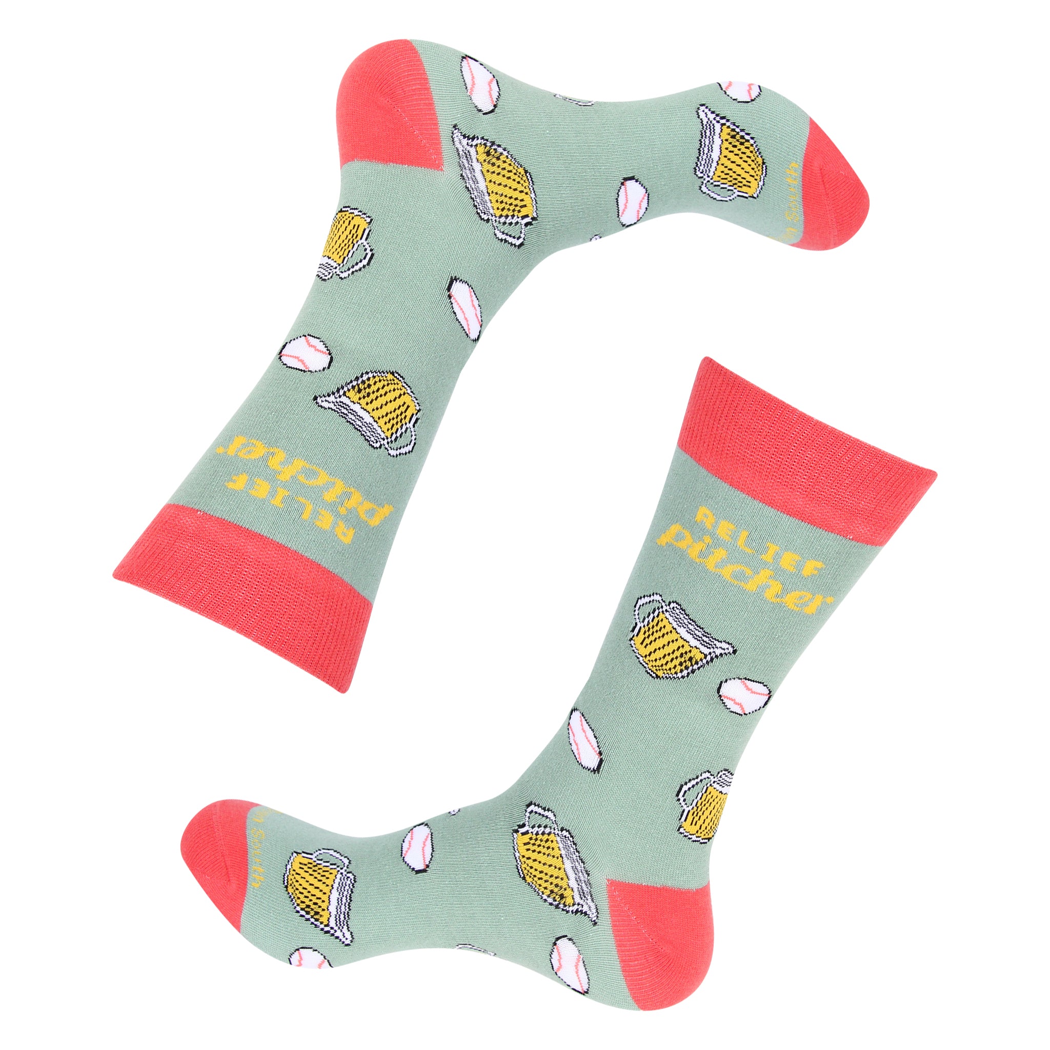 Step up to the mound—and the bar—with these hilarious Relief Pitcher Baseball Socks, featuring a playful repeating pattern of baseballs and beer pitchers under the clever phrase “Relief Pitcher.” Whether you're a die-hard baseball fan, a beer connoisseur, or just love a good pun, these socks knock it out of the park.