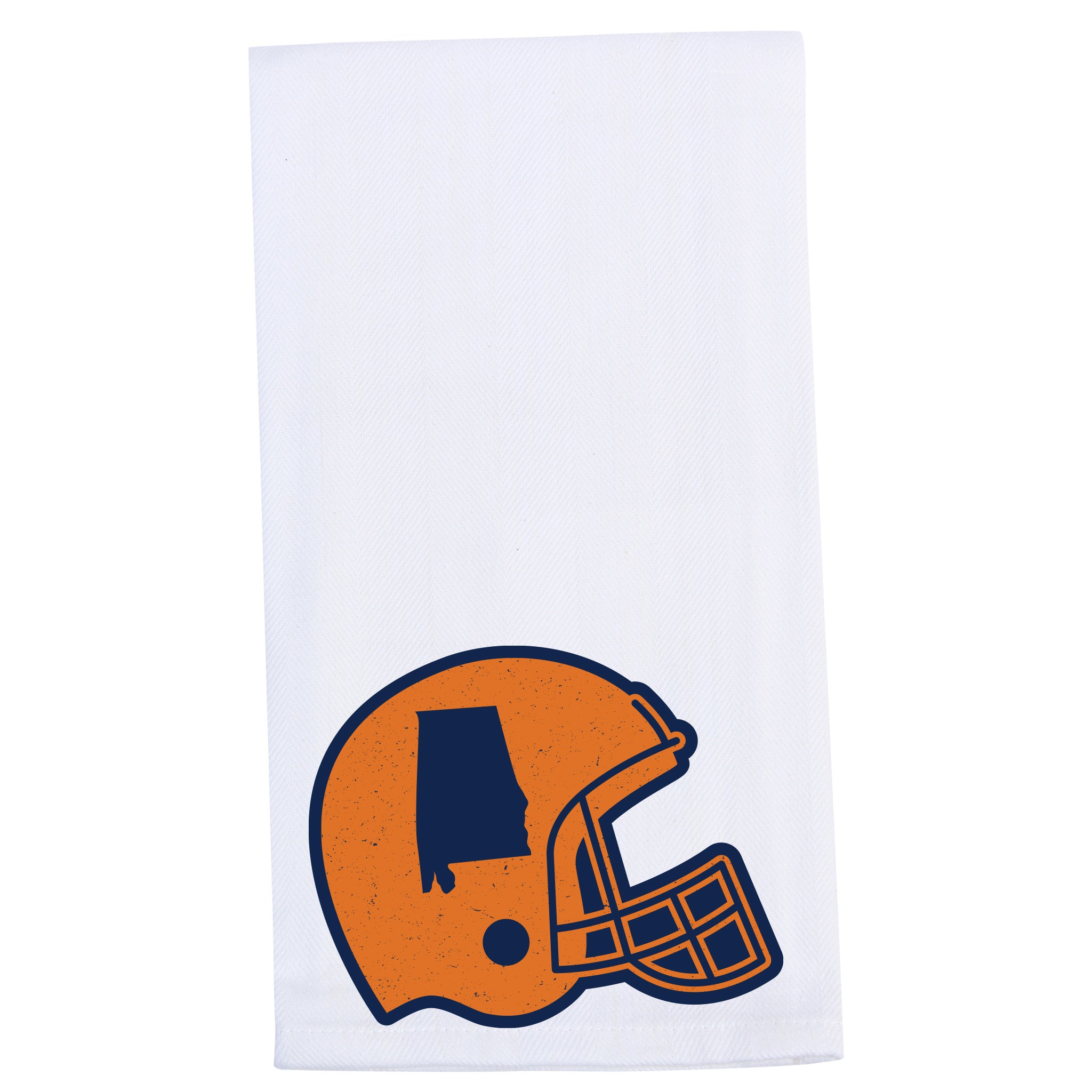 Celebrate your State pride with this playful Alabama State Shape Helmet Tea Towel. Featuring the iconic state outline combined with a classic football helmet design, it adds a fun and spirited touch to your kitchen. Perfect for game days or everyday use, this towel brings a splash of Southern charm while keeping your space tidy.