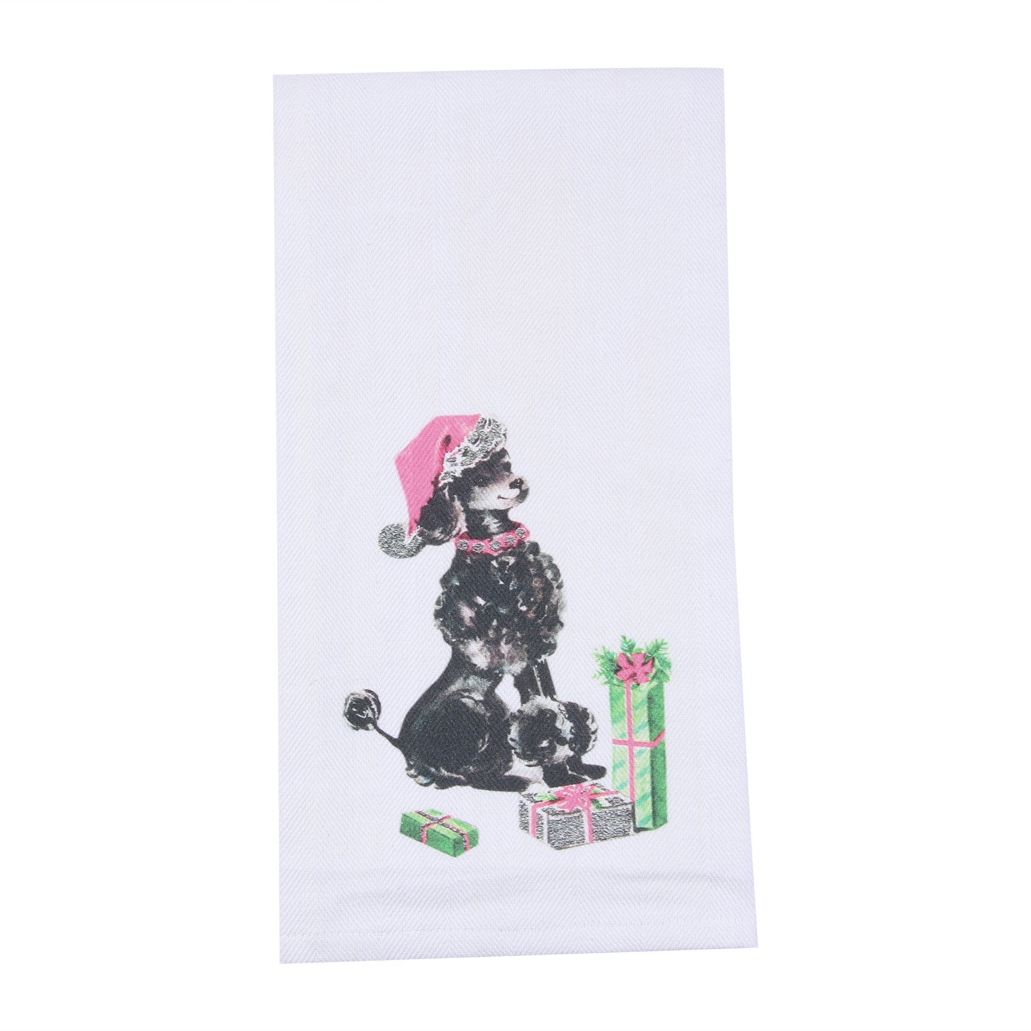 Add festive flair to your holiday kitchen with the Christmas Dog Tea Towel, featuring an adorable illustration of a cheerful poodle sitting beside opened Christmas gifts. This charming design brings together seasonal joy and pet-lover appeal, making it perfect for dog owners, poodle fans, and anyone who celebrates the holidays with a four-legged friend by their side.