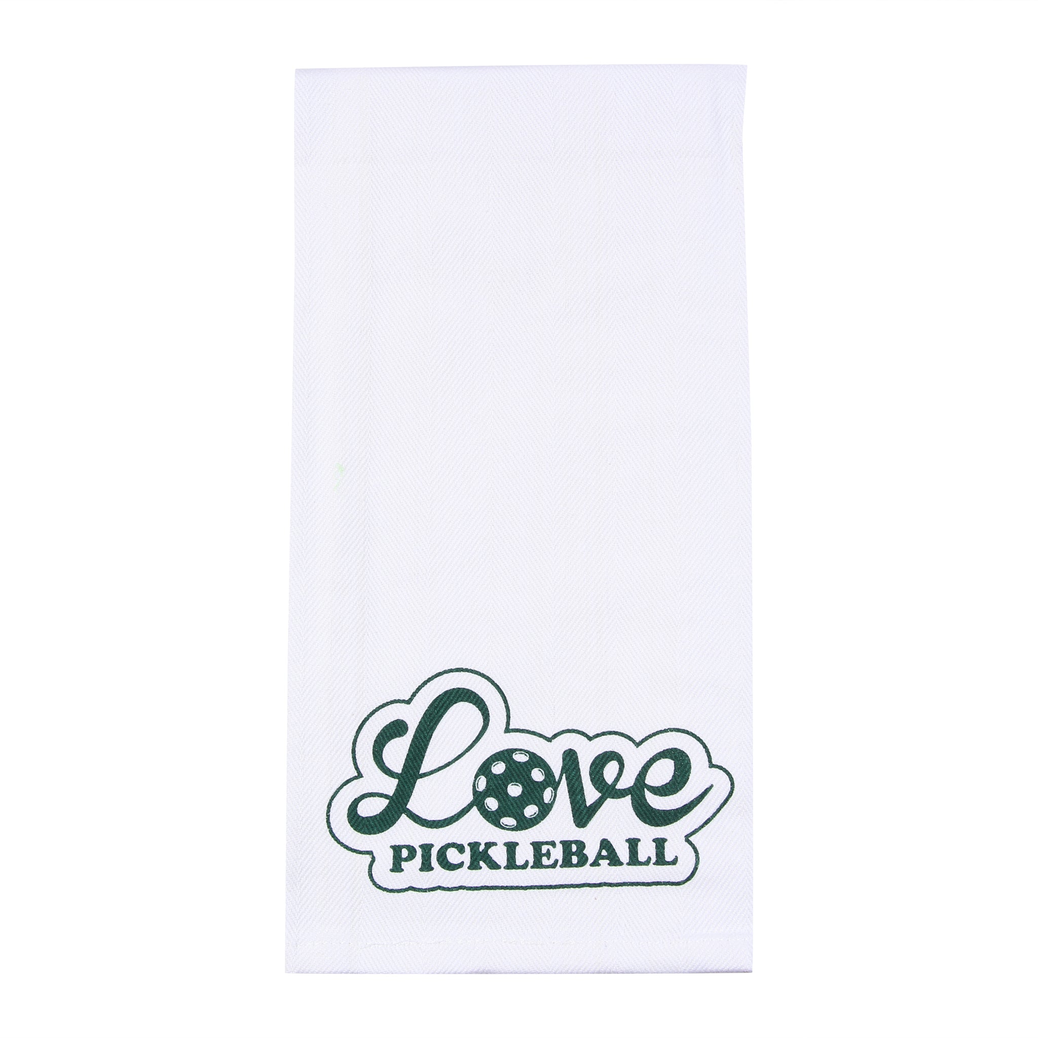 Show your passion for the fastest-growing sport in America with the Love Pickleball Pickleball Tea Towel, a perfect blend of fun and function for any pickleball enthusiast. This charming kitchen accessory features the simple yet powerful message "Love Pickleball," making it a standout piece for your kitchen, game room, or bar area.