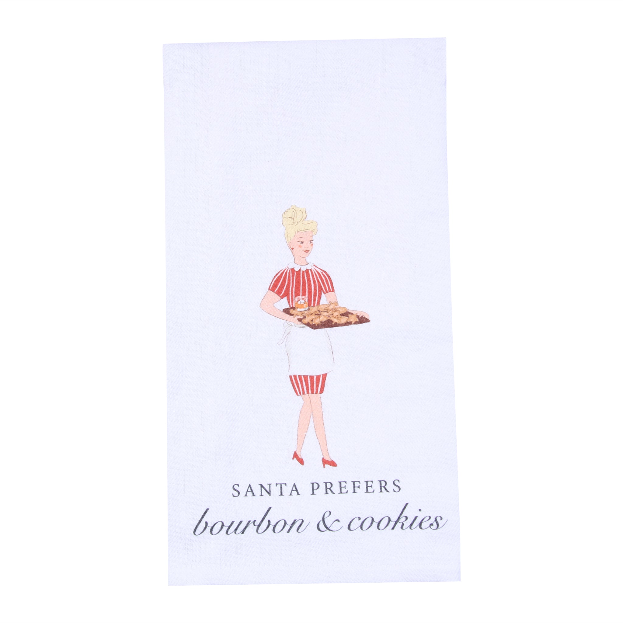 Make spirits bright with the Santa Prefers Bourbon Tea Towel, featuring a charming illustration of a tray topped with bourbon and cookies, paired with playful holiday text. This festive towel adds a cheeky twist to traditional Christmas decor, perfect for bourbon lovers who know Santa has refined taste.