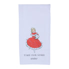 Bring a splash of holiday humor to your kitchen with this charming Time For Some Wine Holiday Tea Towel. Featuring a festive illustration of a woman in a vibrant red dress paired with the witty message "Time for some wine," it's the perfect blend of seasonal cheer and lighthearted fun. Ideal for drying dishes, displaying on your oven, or gifting to the wine-loving friend who appreciates a good laugh. A delightful addition to any kitchen that celebrates the joyful spirit of the season.
