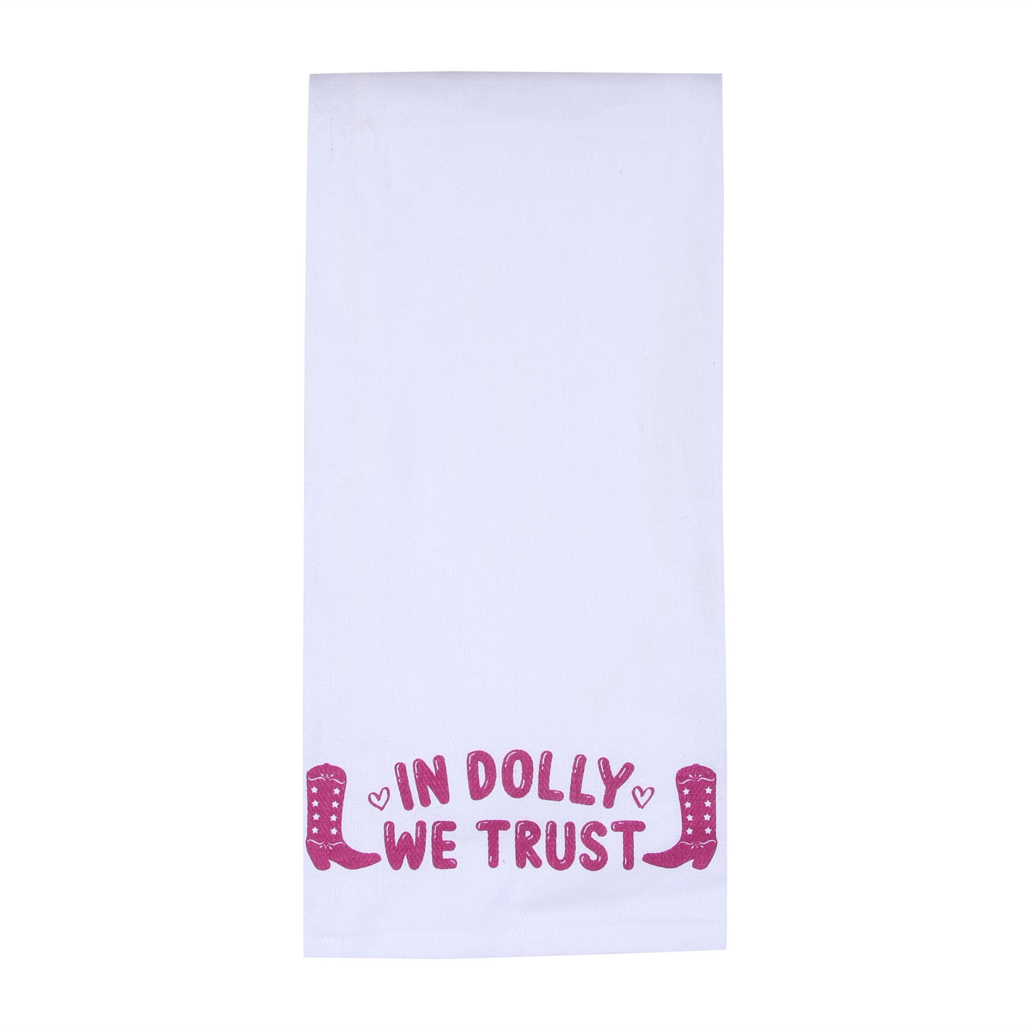 Add a little country soul and a whole lot of sass to your space with our In Dolly We Trust Tea Towel, featuring two charming pink cowboy boots and a tribute to the one and only Dolly Parton. This fun and fabulous towel blends Southern charm, Western style, and just the right amount of attitude—perfect for fans of Dolly’s wit, wisdom, and rhinestone-studded heart.