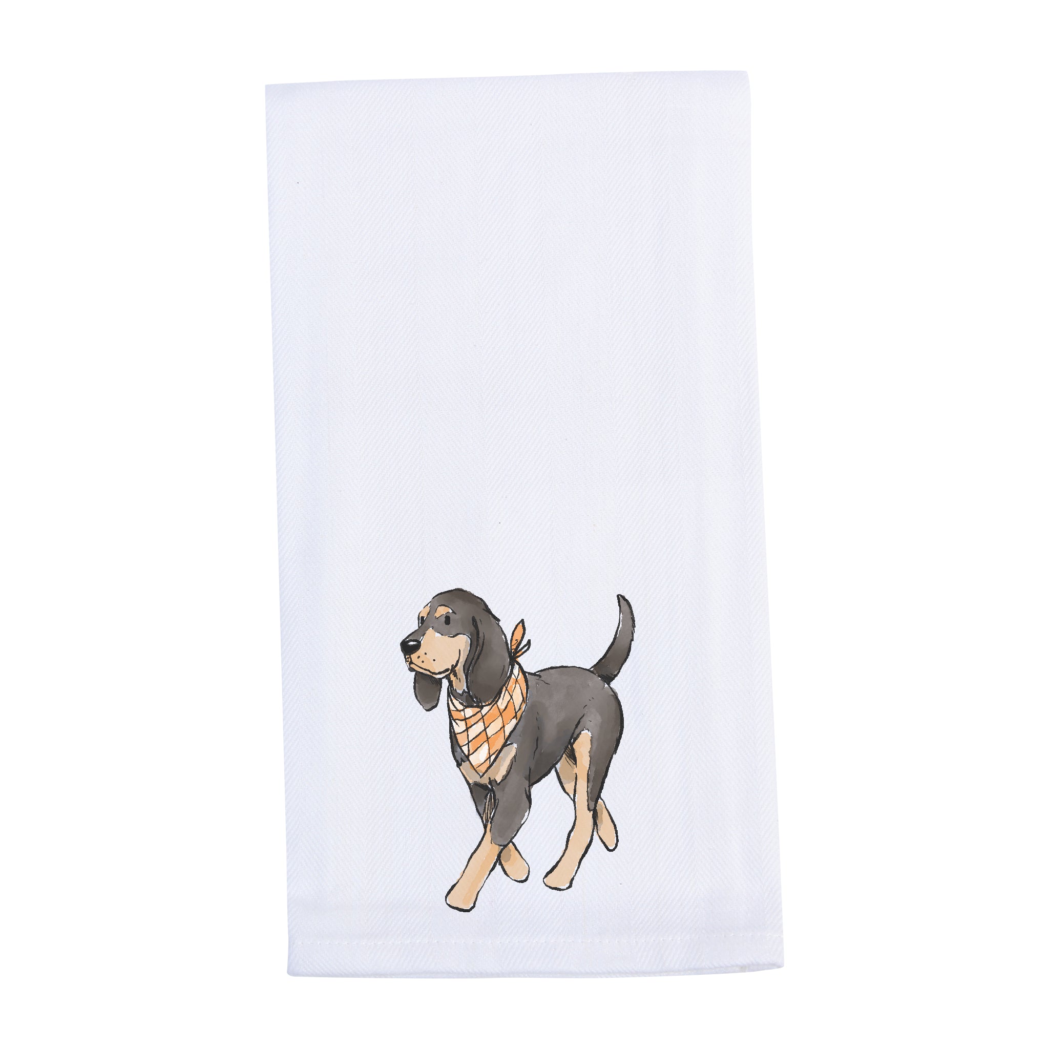Showcase your love for Tennessee’s iconic heritage with our charming Bluetick Coonhound Walking Dog Tennessee Tea Towel featuring a Bluetick Coonhound donning a vibrant orange-and-white checkerboard bandana. This design pays tribute to Tennessee’s deep-rooted traditions, where the Bluetick Coonhound holds a special place as a beloved hunting dog and state symbol.