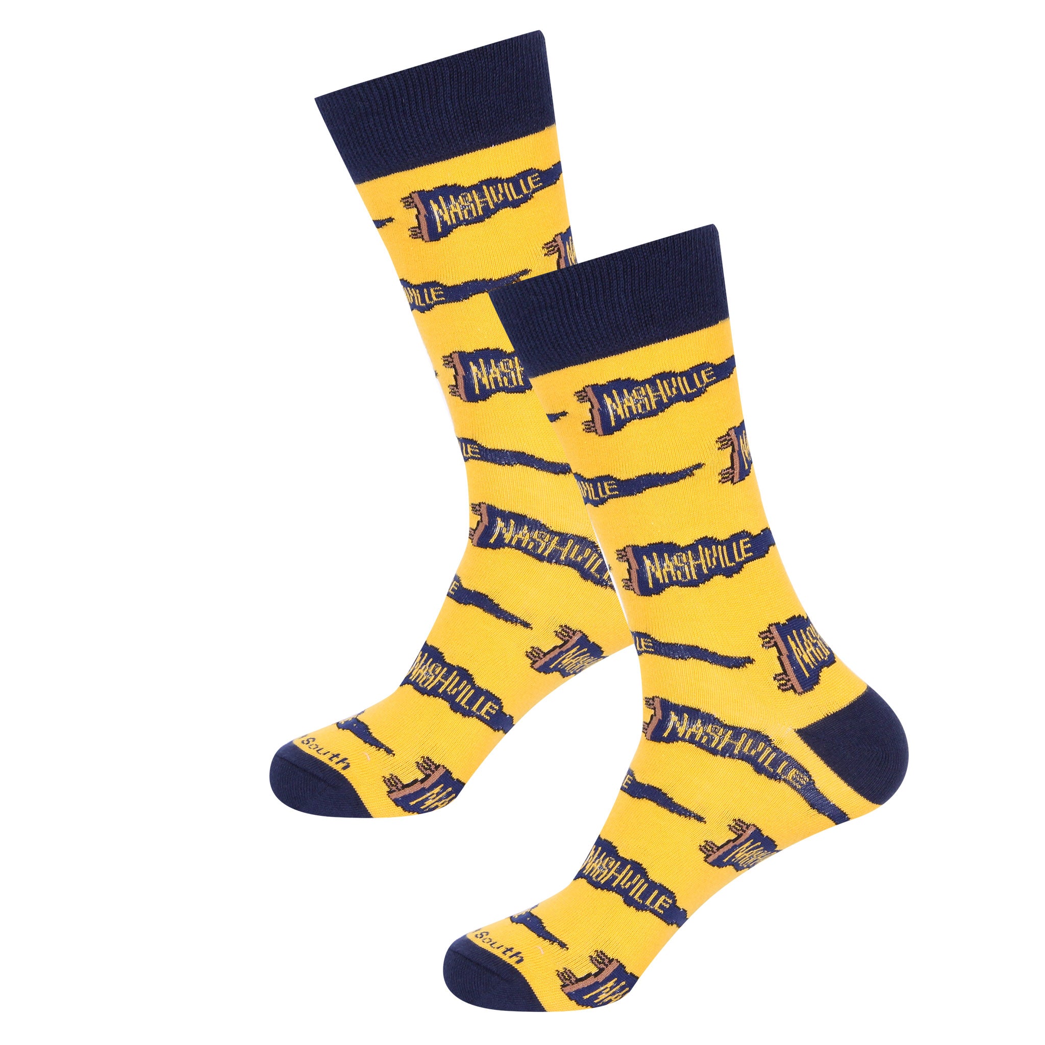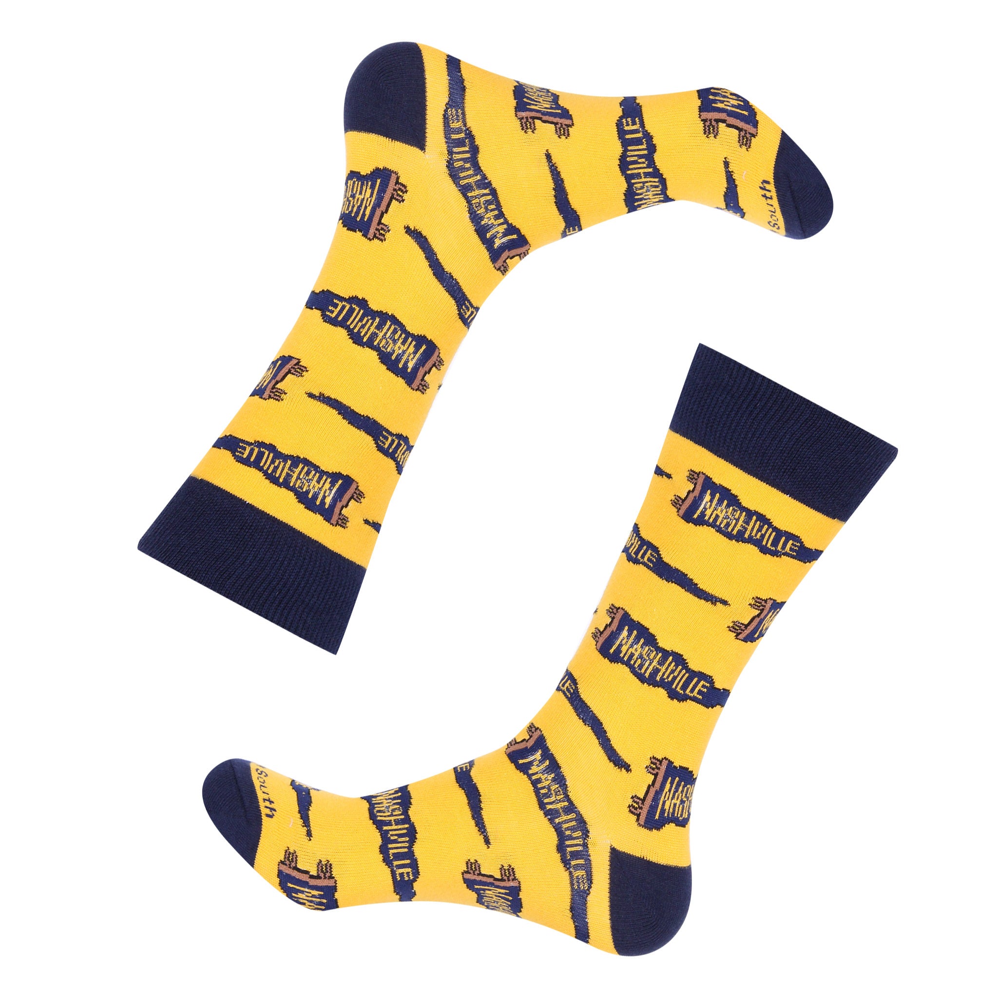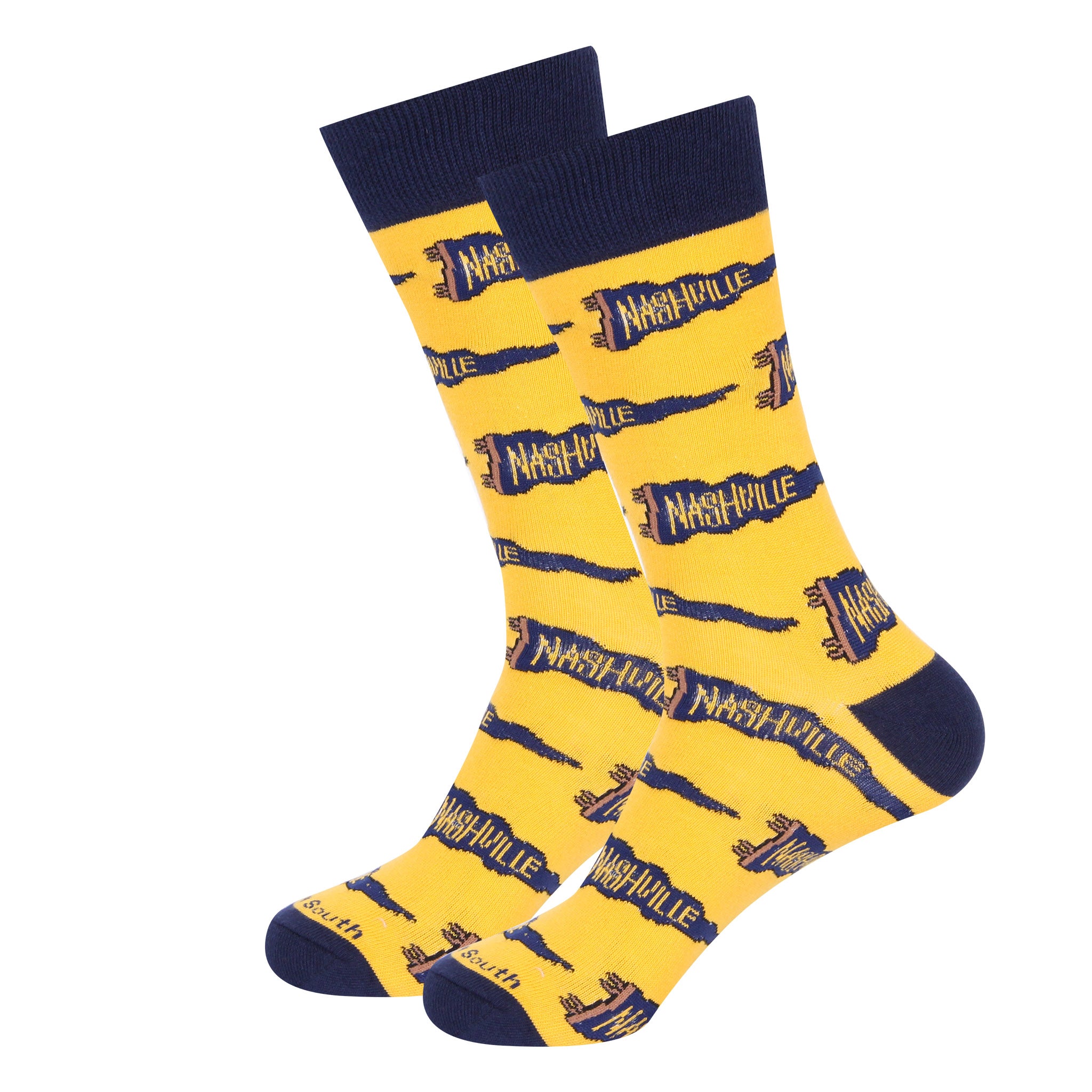 Step up your sock game with these Nashville Orange/Navy Pennant Socks! Featuring bold orange and navy colors with a fun pennant design, they add a playful pop to any outfit. Perfect for showing off your team spirit or just brightening your day, these socks combine comfort and style effortlessly. Slip them on and let your feet do the cheering!