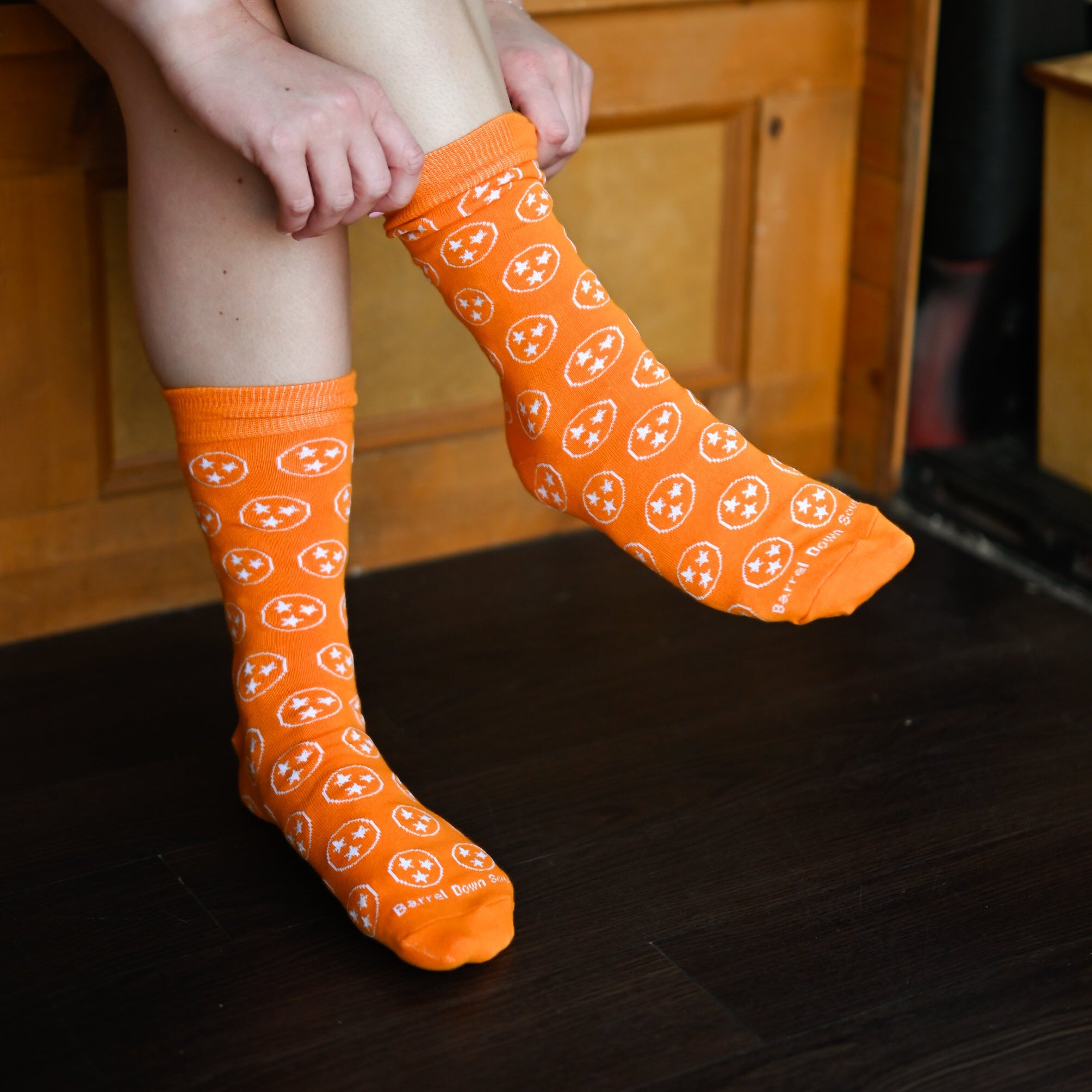 Whether you’re heading to game day, exploring town, or just repping your state pride, these eye-catching socks are a must-have for any true Tennessean. The unmistakable tri-star symbol and signature orange color make these socks an instant favorite for southern style lovers and anyone proud to call the Volunteer State home.