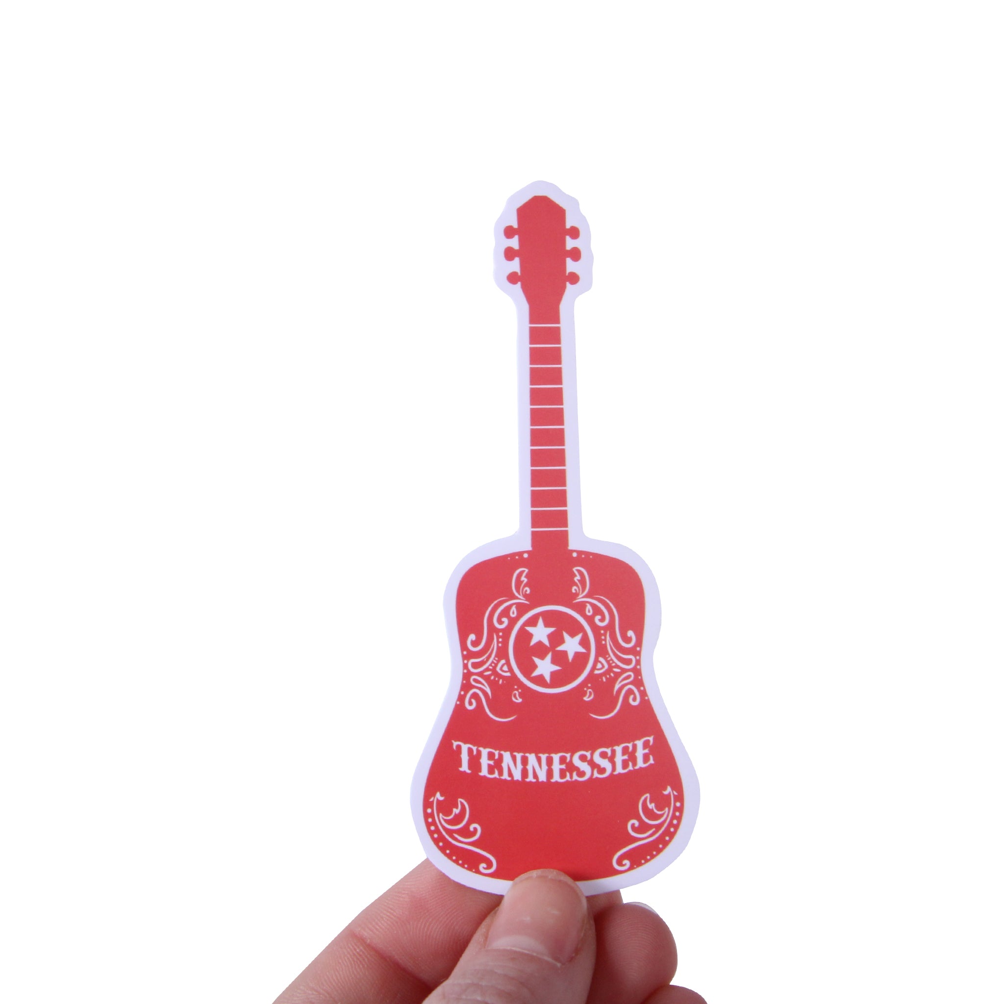 Show your Tennessee pride with this fun Tennessee Guitar Sticker! Featuring the iconic tri-star emblem and "Tennessee" lettering, it's perfect for decorating laptops, water bottles, guitar cases, or anywhere you want to rep the Volunteer State. Stick it on and let everyone know where your heart belongs—or at least where your musical soul lives!