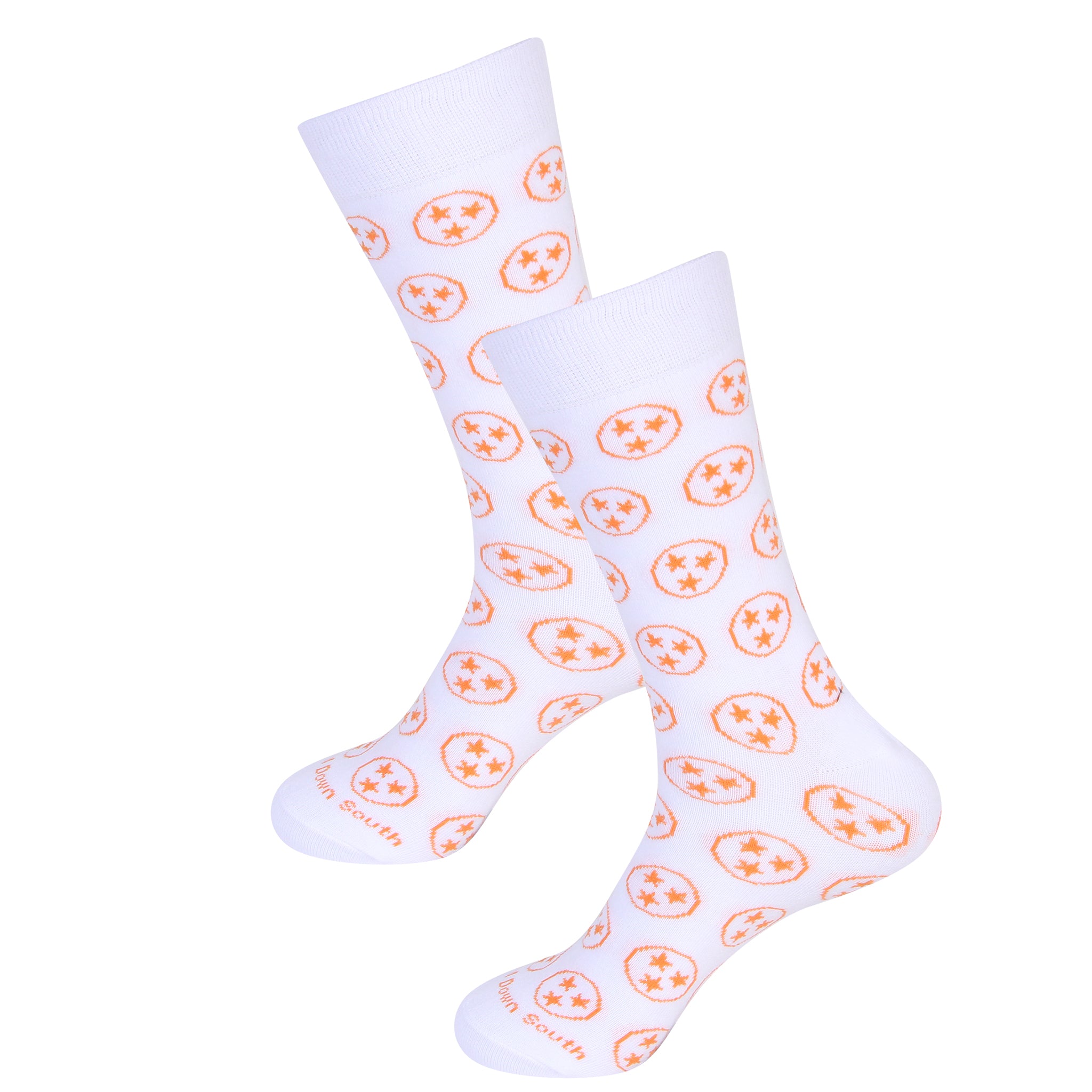Step up your sock game with these White/Orange Tennessee Tri Star Socks! Featuring the iconic Tri Star emblem in vibrant orange on a crisp white background, they add a fun pop of team spirit to any outfit. Perfect for game day or everyday wear, these socks combine comfort and style to keep your feet happy while showing off your Tennessee pride.