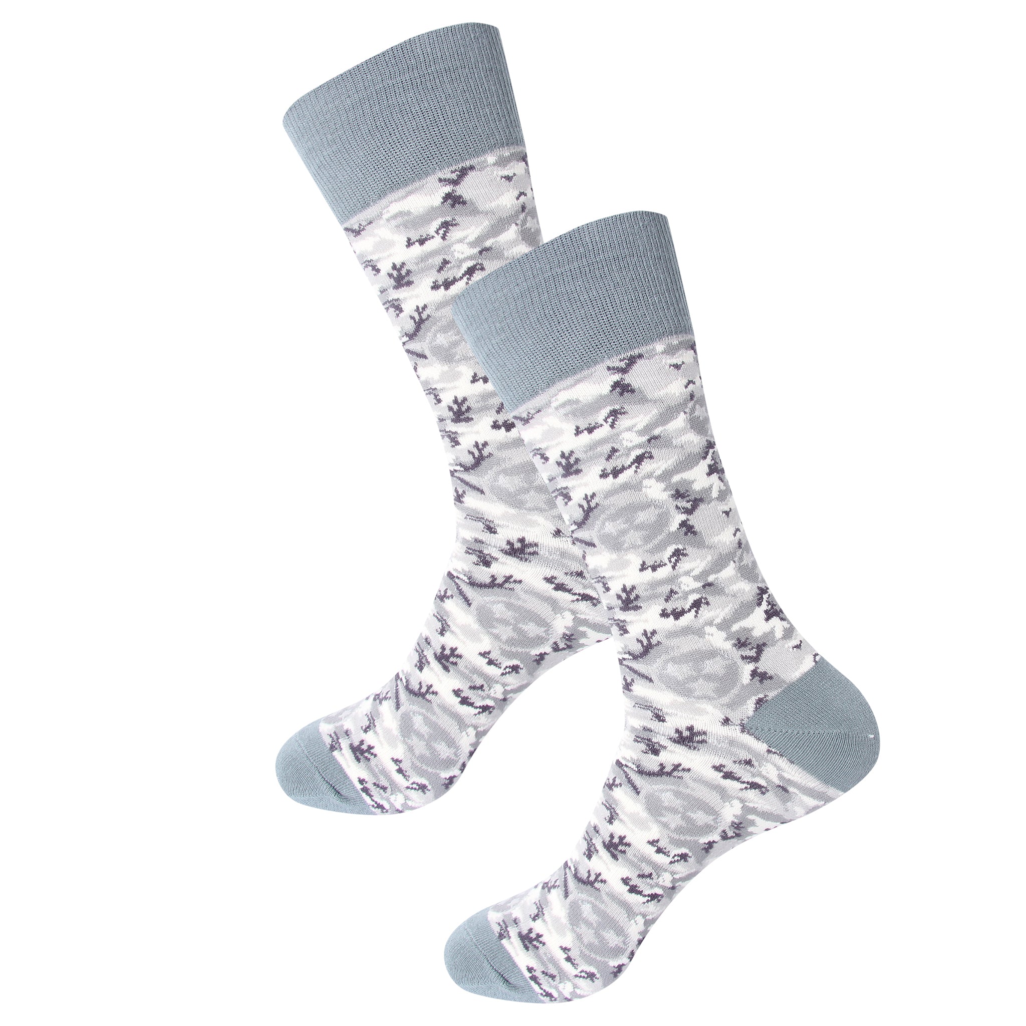 Step out in subtle Tennessee pride with our Tri Star Tiger Stripe Camo socks. Featuring a sleek gray-and-cream camo base layered with Tennessee Tri-Star emblems and bold tiger stripe textures, these socks bring a rugged twist to a state classic. Finished with solid charcoal cuffs, toes, and heels for a clean, athletic look.