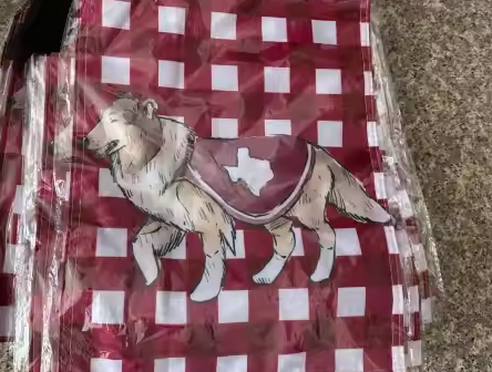 Add a touch of charm to your outdoor space with this Maroon Plaid Dog TX Garden Flag. Featuring a proud collie in a maroon blanket adorned with a white state outline, the design stands out beautifully against a bold red-and-white checkered background. Perfect for front yards, porches, or tailgate setups, this flag combines durability with eye-catching style, making it a standout piece for any season.