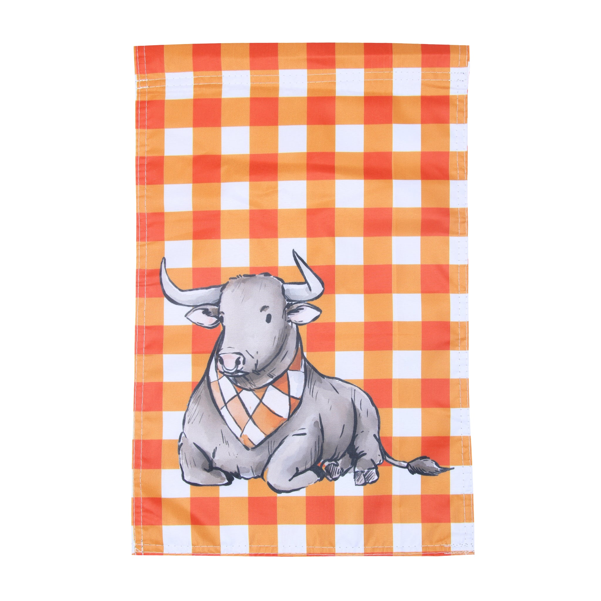 Add bold spirit to your outdoor décor with this eye-catching Orange Plaid Longhorn TX Garden Flag. Featuring a hand-drawn bull wearing a checkered bandana, set against a bright orange-and-white checkered background, this design brings a strong and playful touch to porches, yards, and tailgate spaces. Perfect for game days, gatherings, or everyday display, this flag combines durability with a standout design that makes your outdoor space festive and fun.