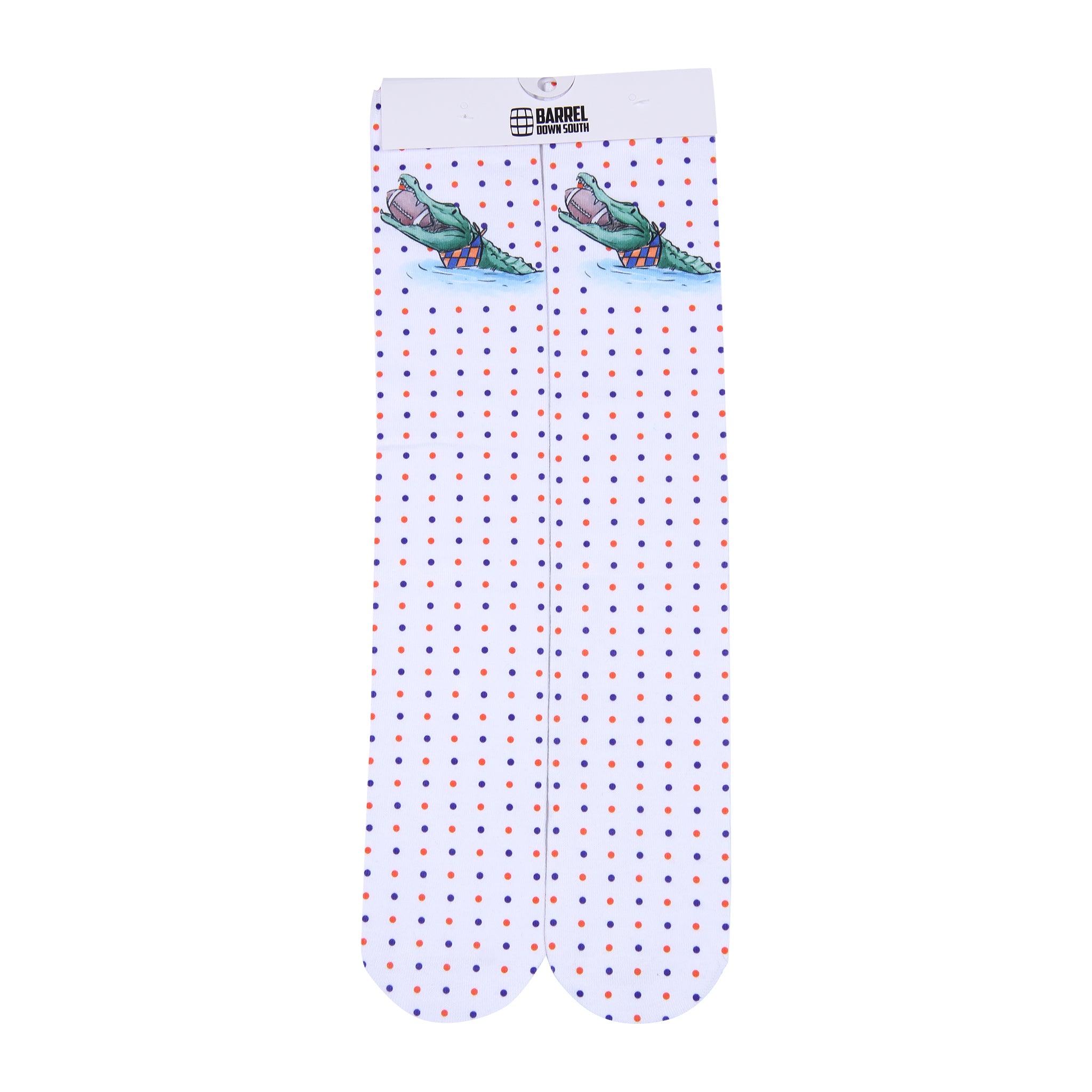Step into bold style with these Alligator Coming Out of Water Printed Socks. Featuring a striking alligator design emerging from water, they add a unique edge to your outfit while keeping your feet comfortable all day. Perfect for those who want to showcase their adventurous spirit with every step.