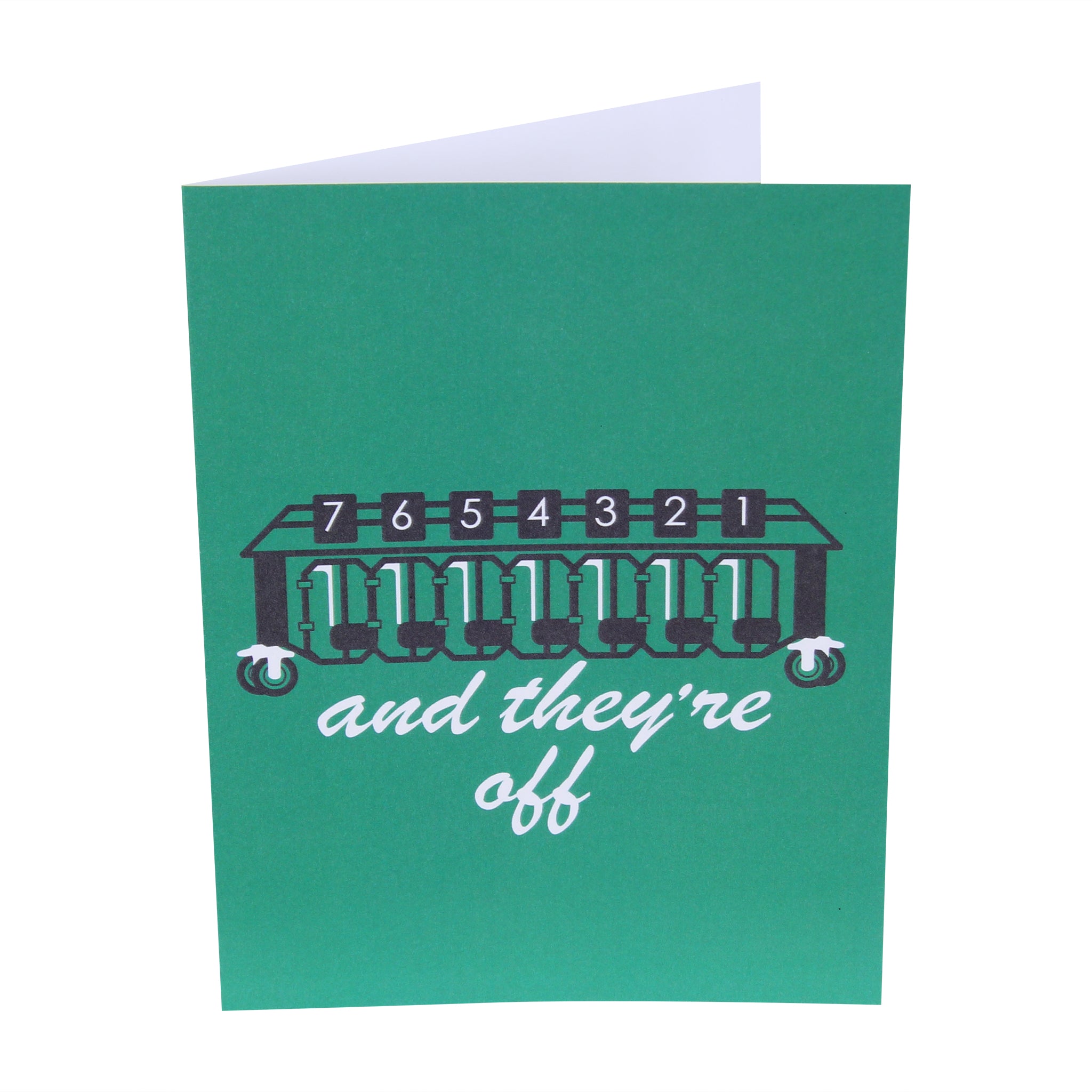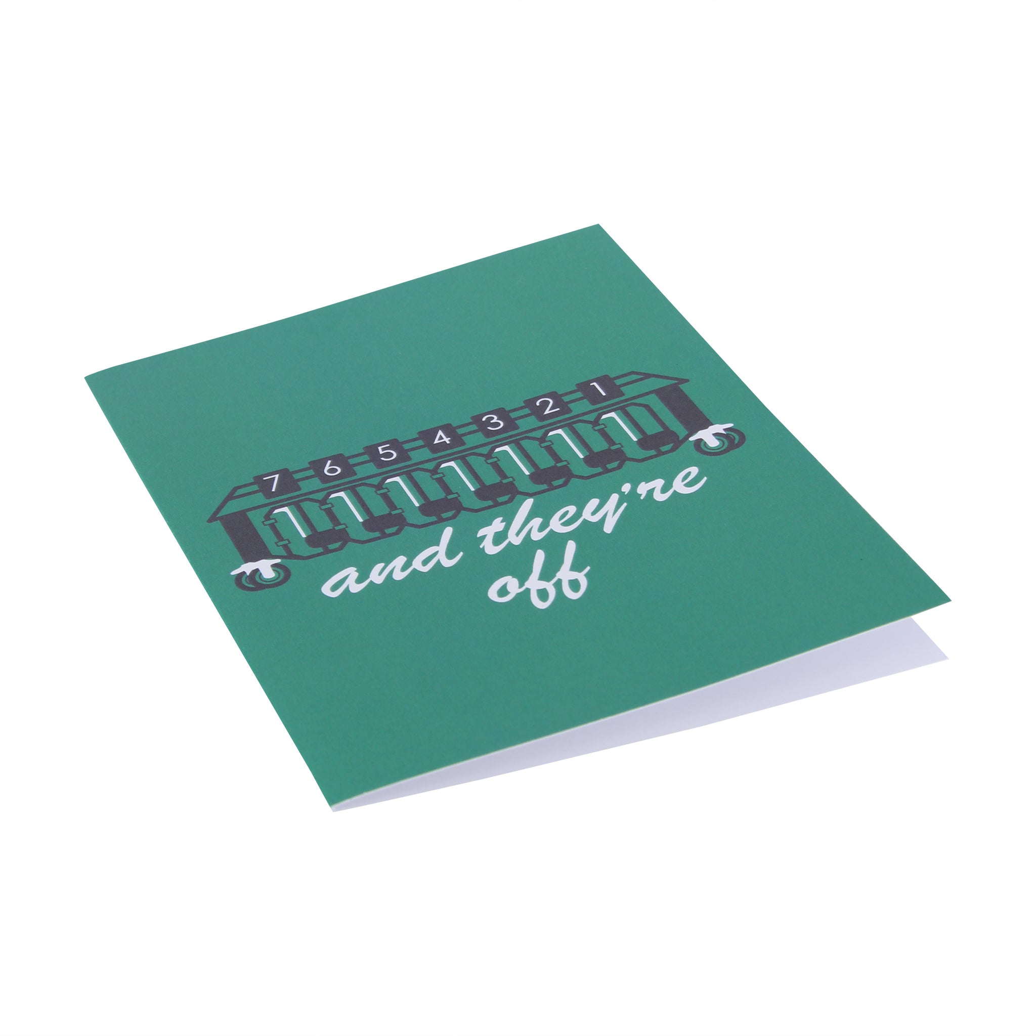 Capture the excitement of race day with the And They're Off Derby Horse Racing Greeting Card. This playful card brings the energy and anticipation of the starting gate to your message, perfect for horse racing fans and anyone ready to cheer on a winner. A fun way to celebrate any occasion with a spirited touch.
