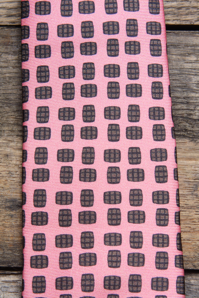 Celebrate the craftsmanship and culture of America’s native spirit with our Barrel Aged Necktie, designed for the true whiskey enthusiast. Set against a striking pink background, this distinctive tie features a repeating pattern of classic whiskey barrels, making it the perfect blend of bold style and Southern heritage.