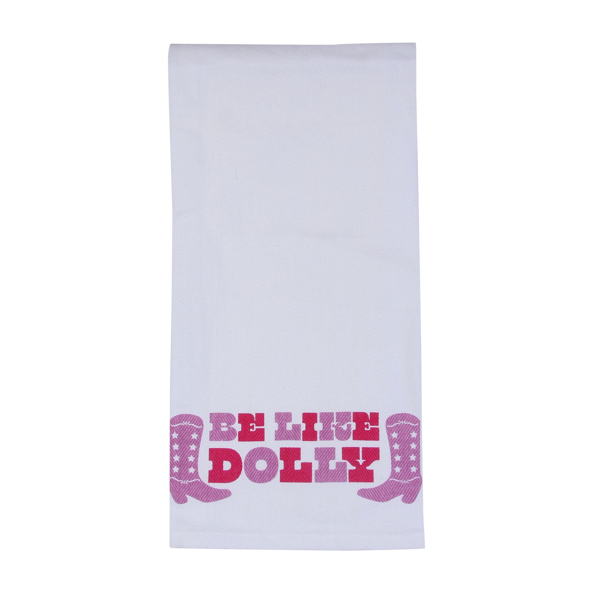 Bring a little sass, sparkle, and Southern wisdom to your kitchen with our Be Like Dolly Tea Towel, featuring two classic pink cowboy boots and a nod to the one and only Dolly Parton. Whether you admire her style, her heart, or her unmatched wit, this towel is the perfect way to celebrate everything Dolly stands for: kindness, confidence, and country charm.