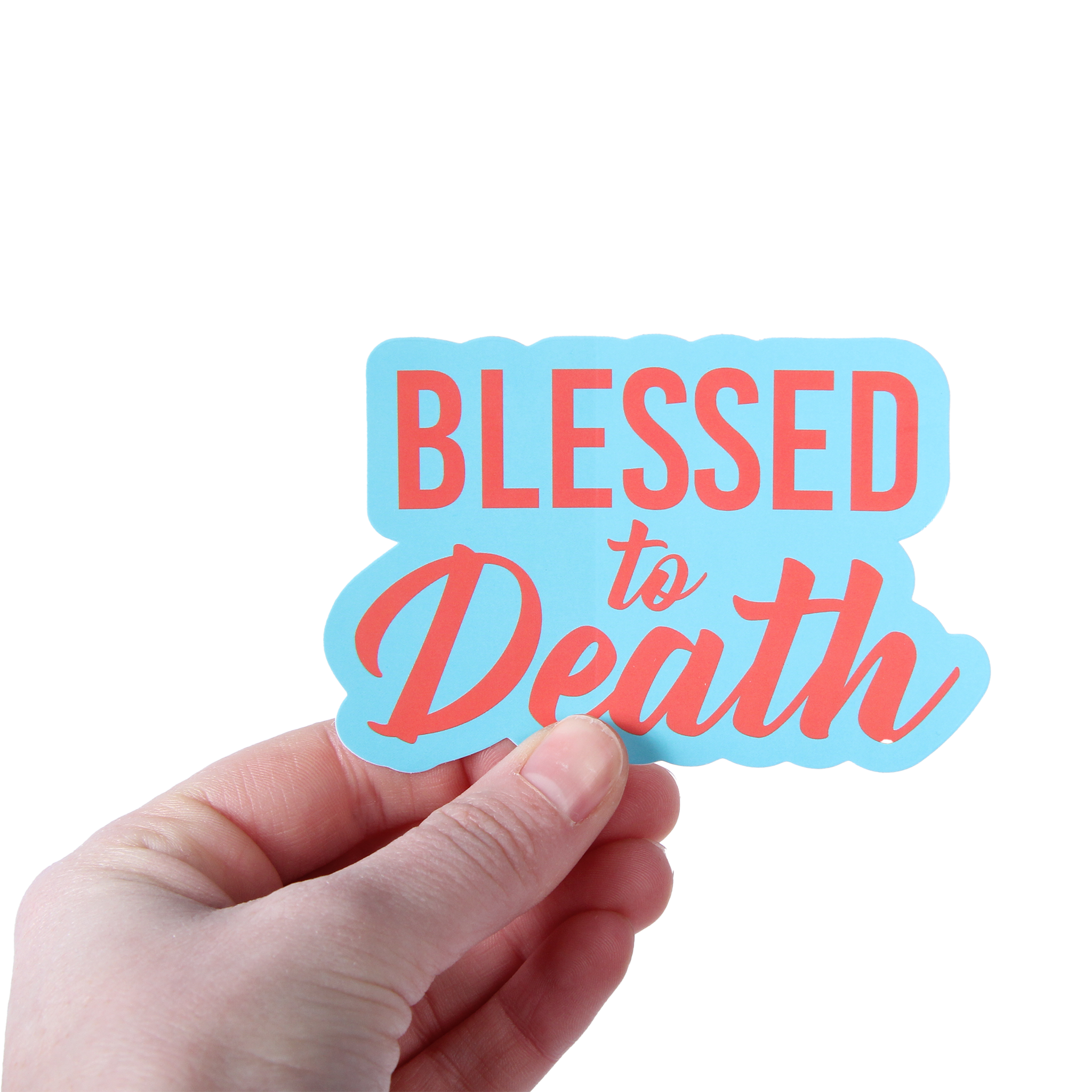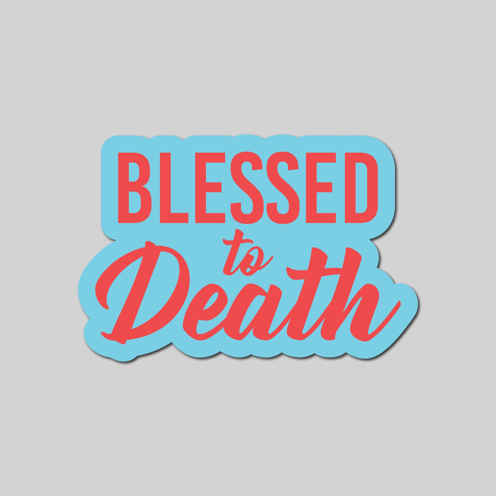 Show your irreverent side with this bold Blessed To Death Sticker featuring "blessed to death" in eye-catching lettering against a vibrant blue background. Perfect for personalizing laptops, water bottles, phone cases, or anywhere you want to add a touch of witty attitude. Weather-resistant and durable, this sticker brings humor and personality to your everyday gear.