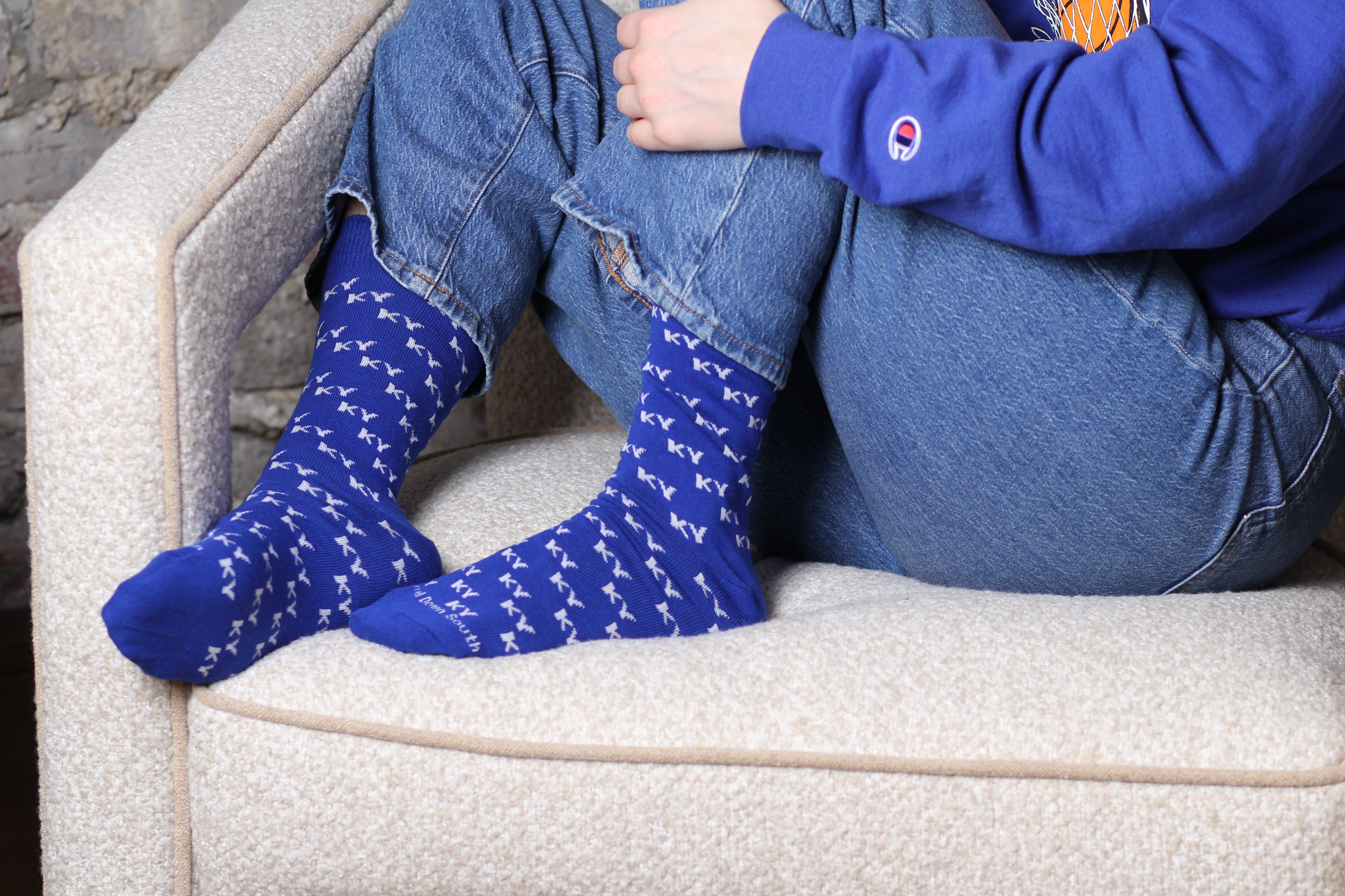 Elevate your everyday style with our Blue KY Letters Socks, a subtle yet expressive homage to the beauty and spirit of Kentucky. Featuring the iconic letters "KY" in a striking blue hue, these socks are a fashionable way to showcase your pride for the Bluegrass State. Whether you're a Kentucky native, an avid fan of the state's vibrant culture, or simply appreciate its picturesque landscapes, these socks offer a versatile and chic way to flaunt your Kentucky roots.
