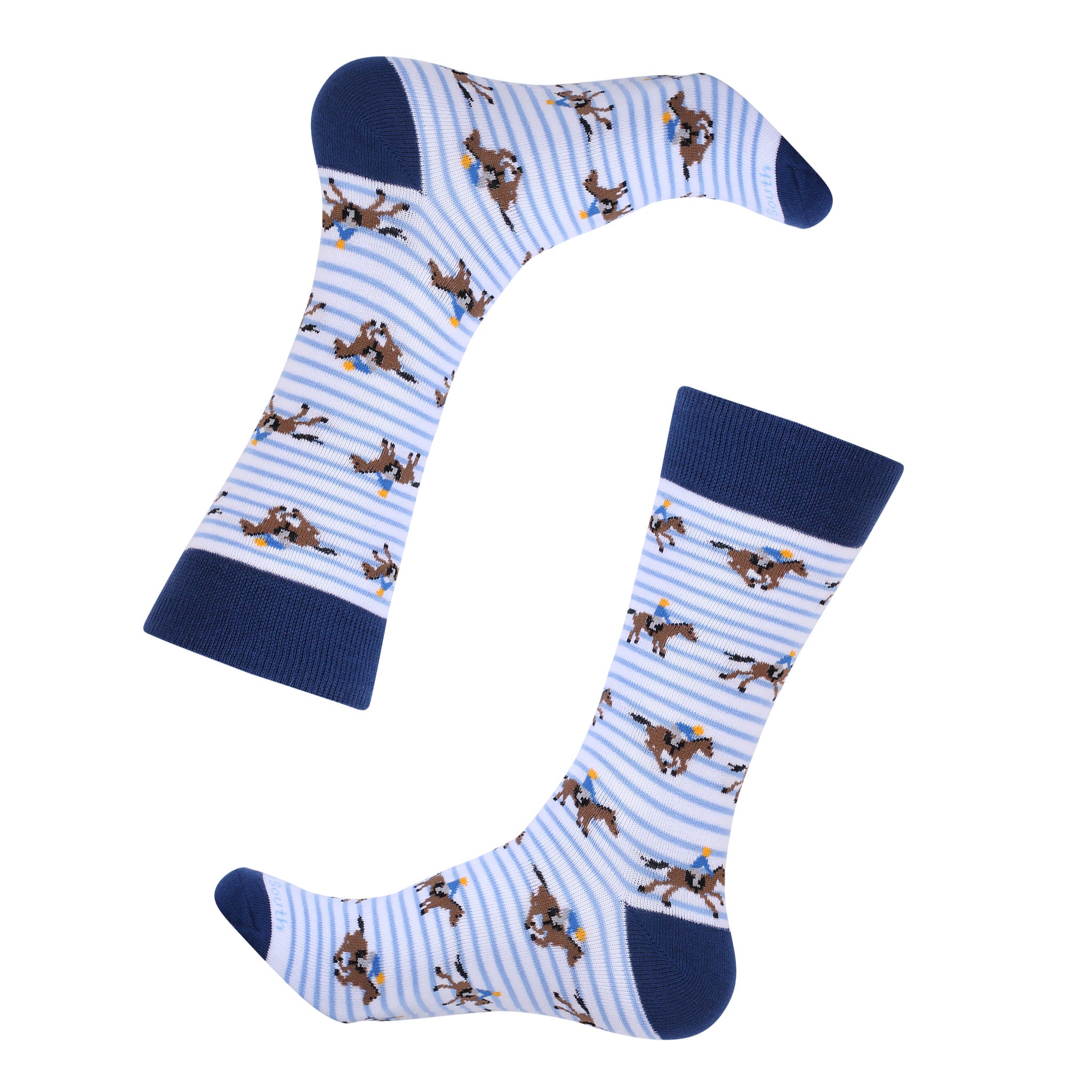 Step up your sock game with these Blue Stripe Horse Racing Socks! Featuring bold blue stripes inspired by the thrill of the racetrack, they add a fun pop of color to any outfit. Perfect for those who love a playful touch and want to show off their spirited style from heel to toe. Comfortable and eye-catching, these socks are ready to race into your wardrobe!