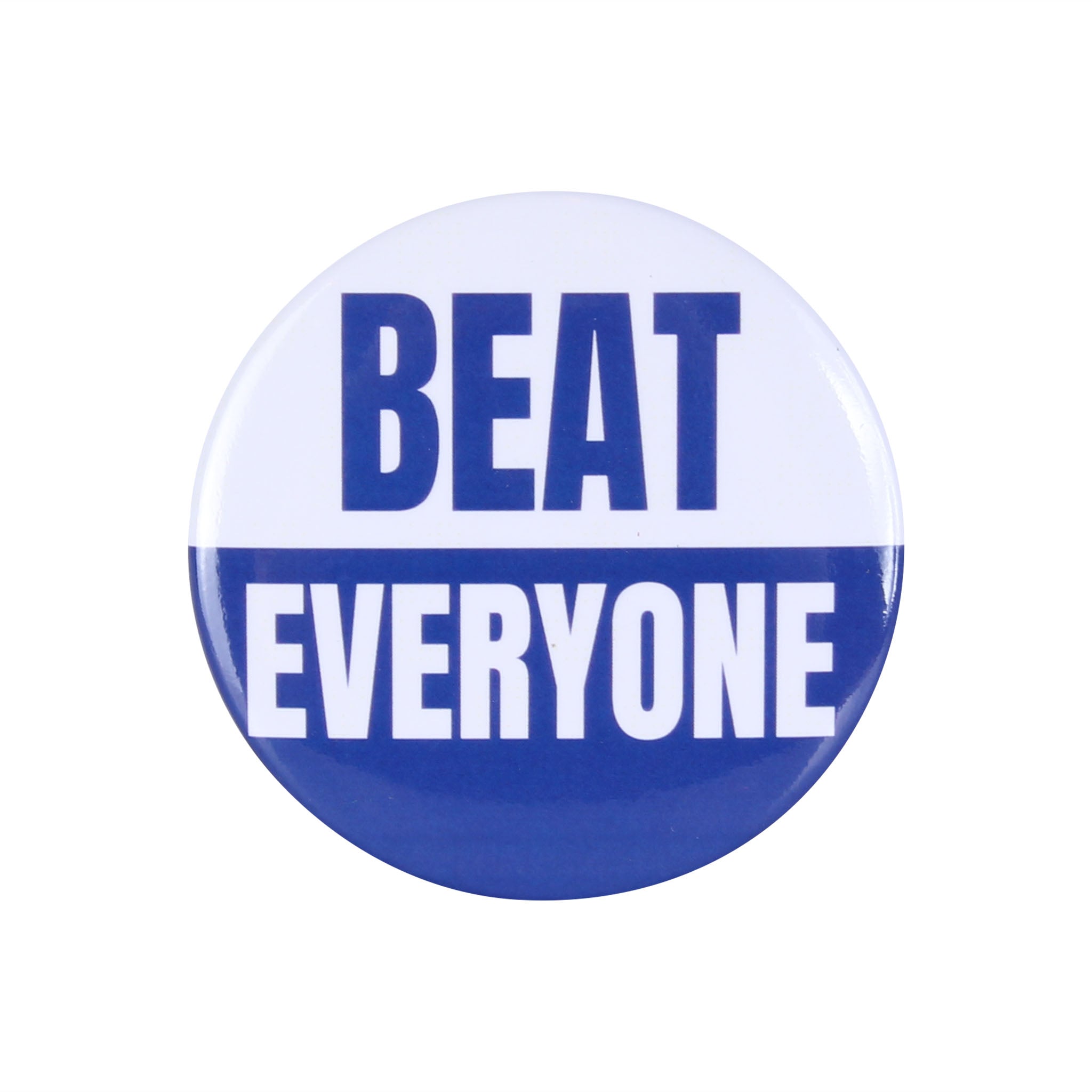 Blue/White Beat Everyone Button Pin