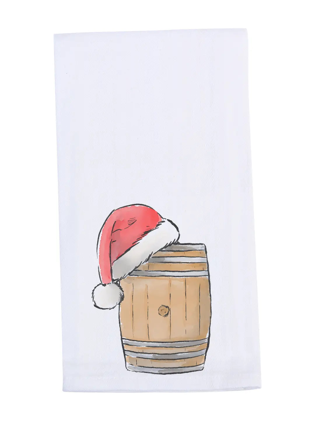 Bourbon Barrel with Santa Hat Christmas Tea Towel