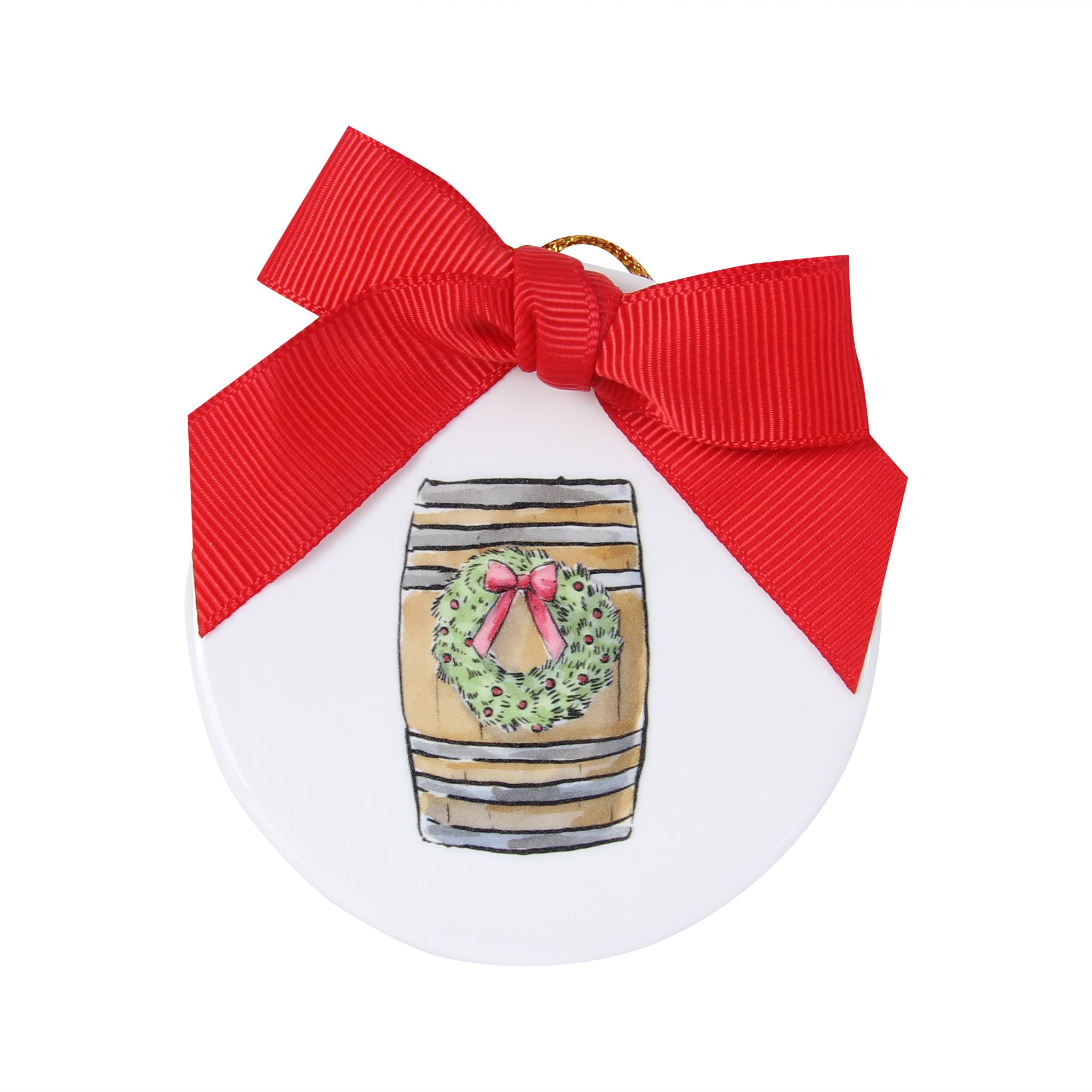 Celebrate the spirit of the season with this charming Bourbon Barrel With Wreath Ceramic Ornament. Perfectly capturing rustic charm and festive cheer, it brings a playful nod to bourbon lovers everywhere. Hang it on your tree or gift it to someone who appreciates a little Southern warmth wrapped in holiday spirit!