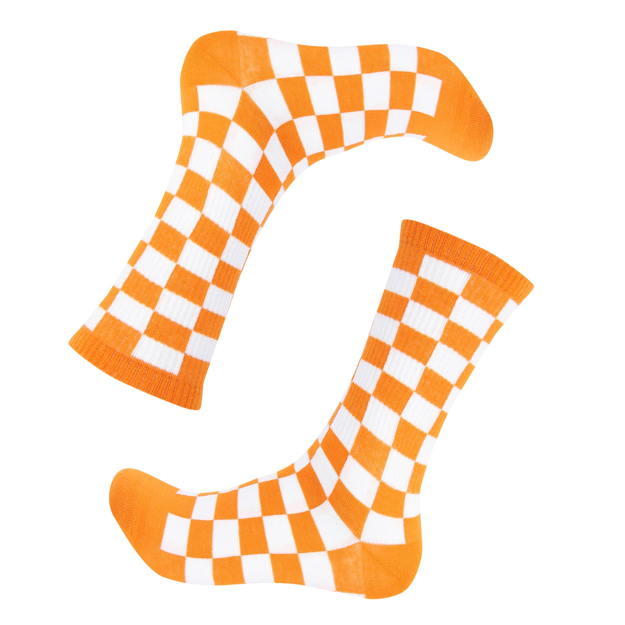Celebrate Tennessee pride with a fresh, bold twist in our Checker Tennessee Socks. Featuring a vibrant repeating pattern of orange and white checkerboard squares inspired by Tennessee’s iconic colors, these socks are perfect for fans of the Volunteers, Southern sports enthusiasts, and anyone who loves standout, spirited fashion.