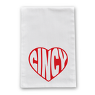 Show your love for the Queen City with the Cincy Heart Tea Towel, featuring the word "Cincy" stretched stylishly to fit inside a bold heart design. This charming tea towel brings a warm and vibrant touch of Cincinnati pride to any kitchen, game day setup, or home decor.