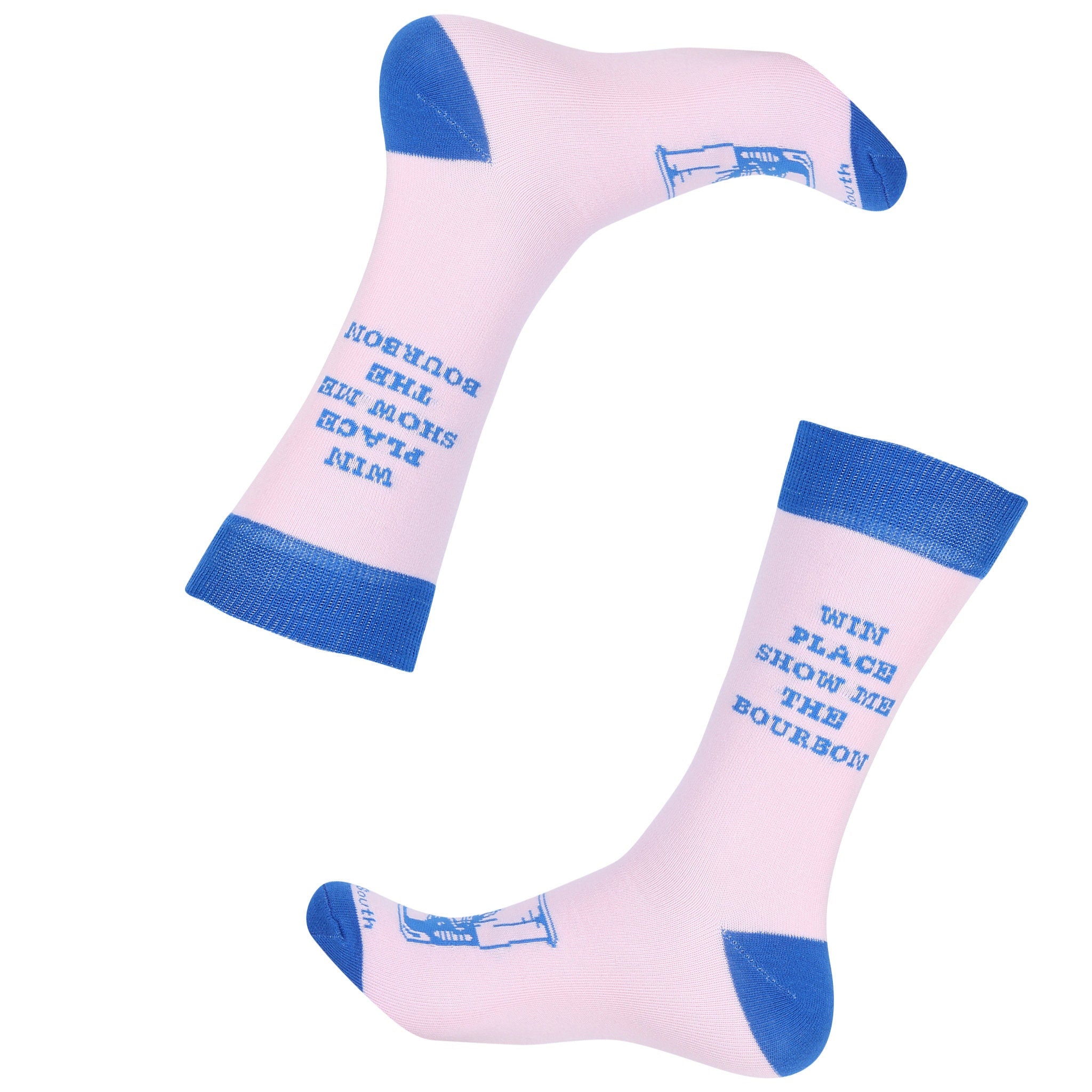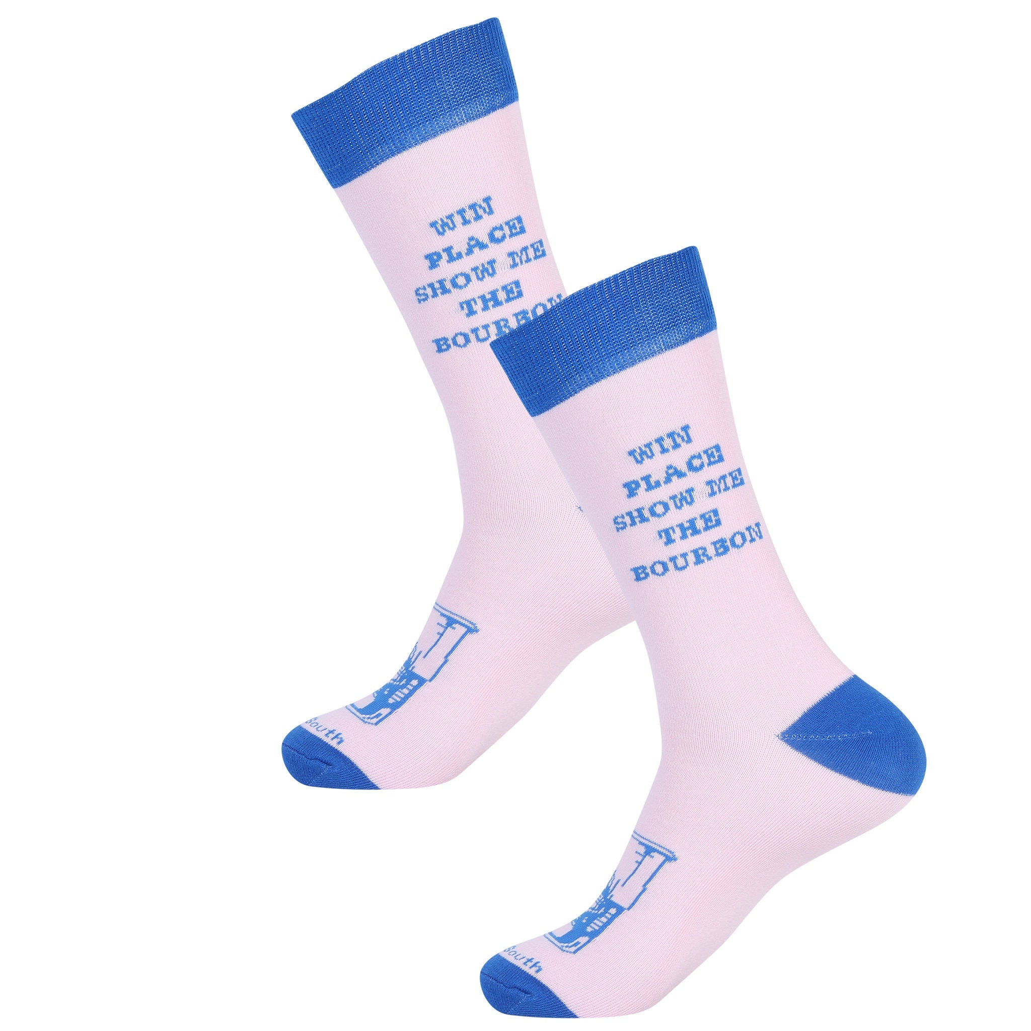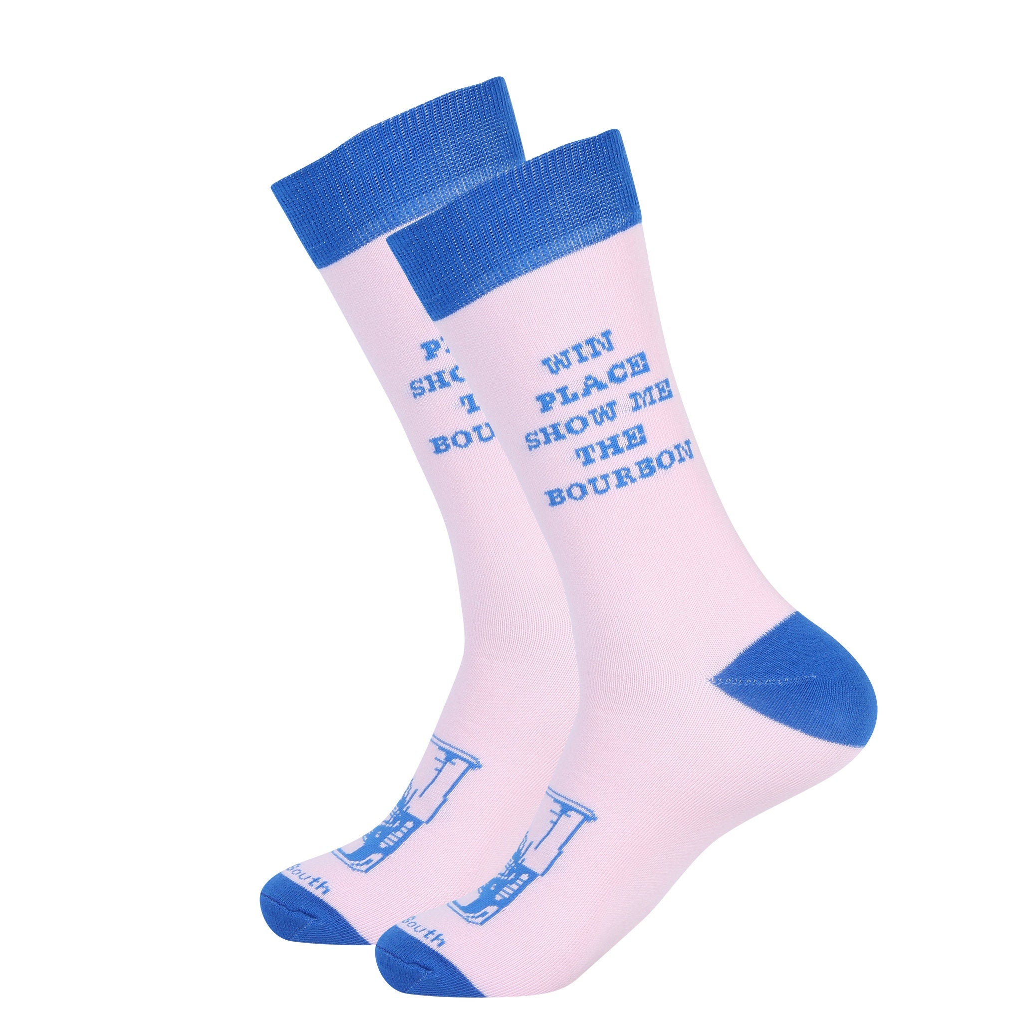 Step into the winner's circle of fashion with our Win Place Show Me The Bourbon Socks, featuring a dynamic design that combines the excitement of the Derby podium with a nod to the rich bourbon heritage of the Bluegrass State. The vibrant colors and intricate details make these socks a standout choice for derby enthusiasts and bourbon connoisseurs alike.